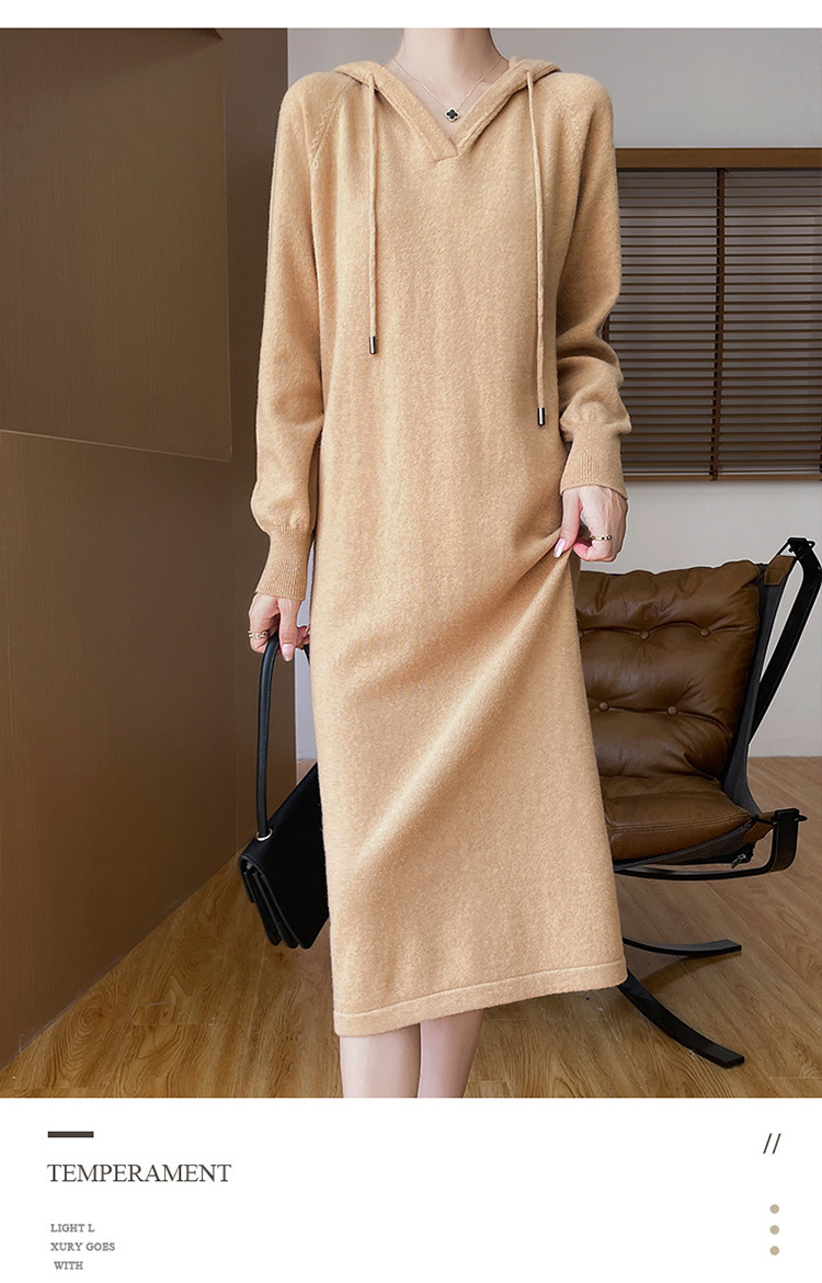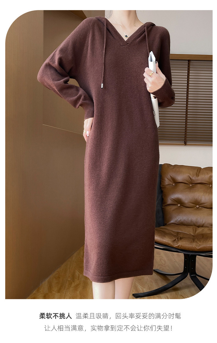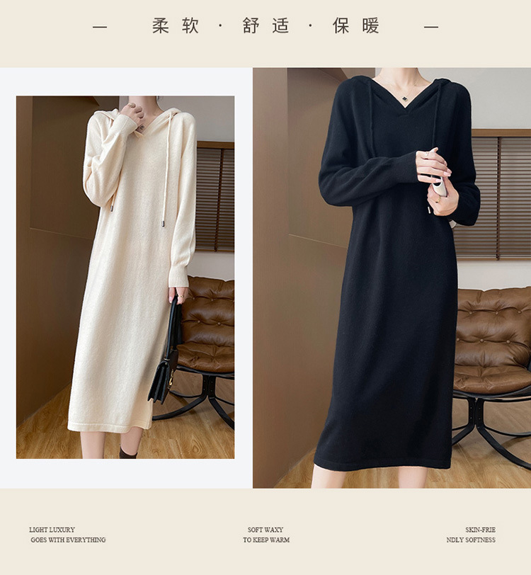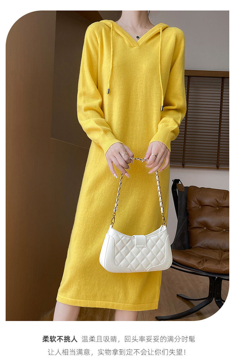 양모 원피스 2024 가을/겨울 새로운 캐주얼 느슨한 니트 스커트 무릎 위에 후드 스웨터 원피스 착용스토어 가기