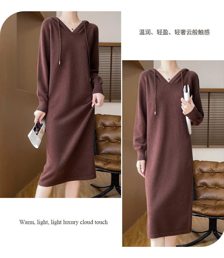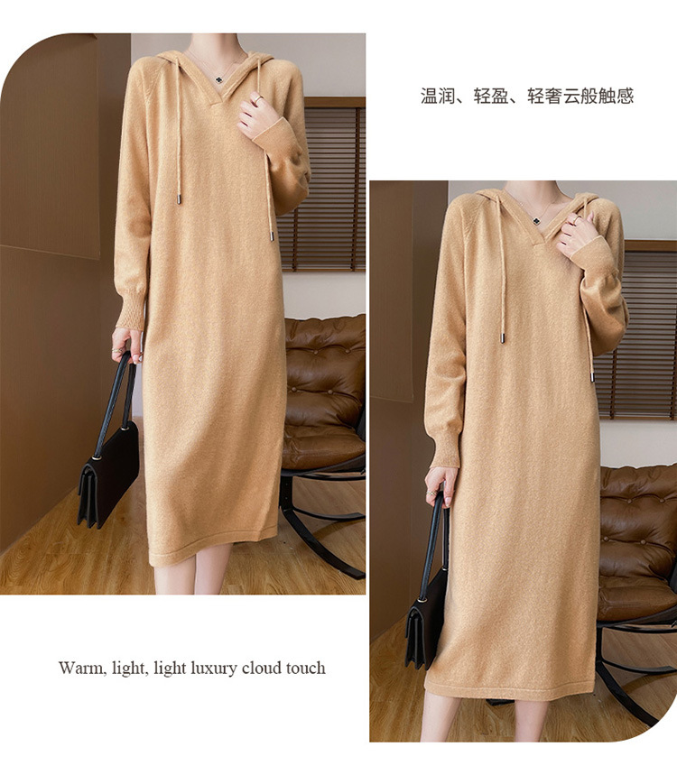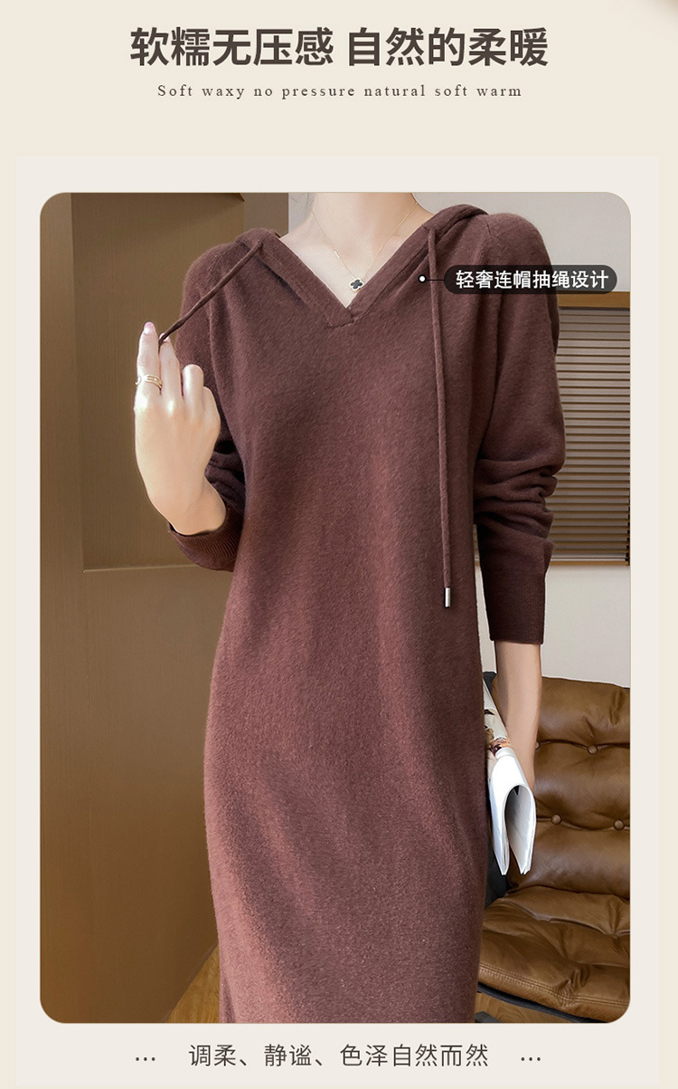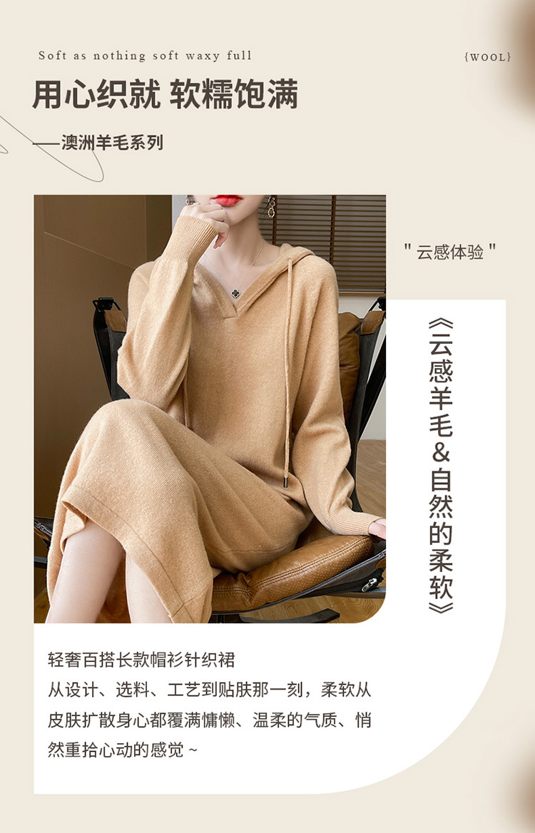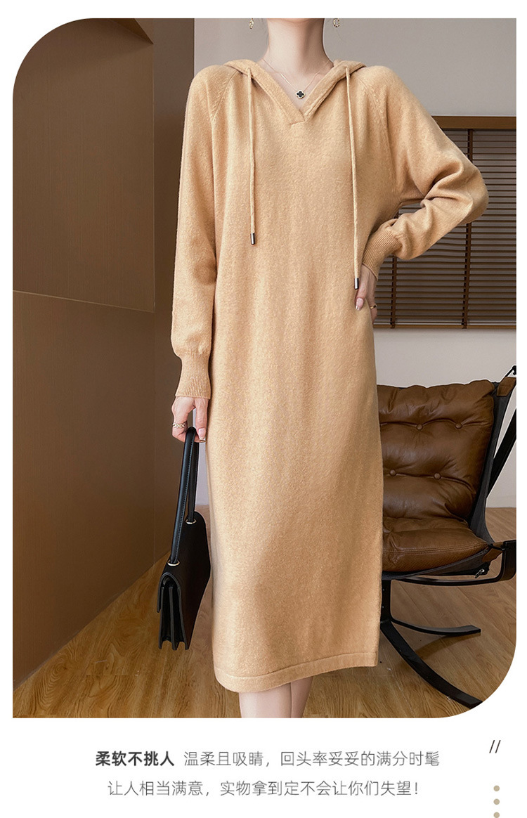 양모 원피스 2024 가을/겨울 새로운 캐주얼 느슨한 니트 스커트 무릎 위에 후드 스웨터 원피스 착용스토어 가기
