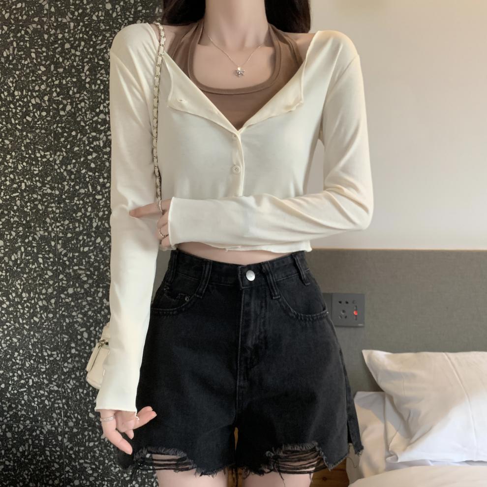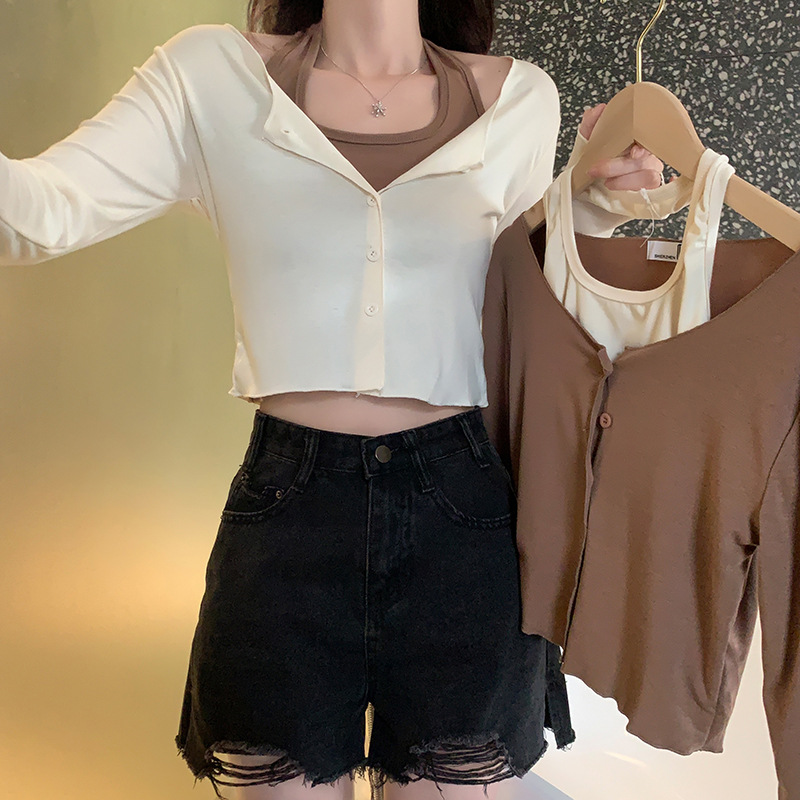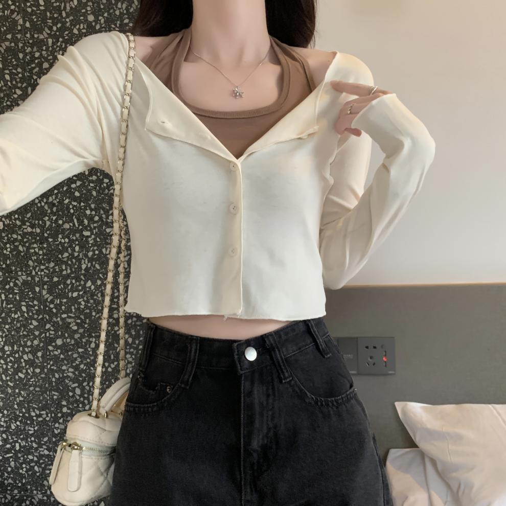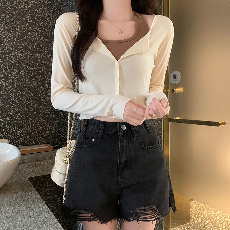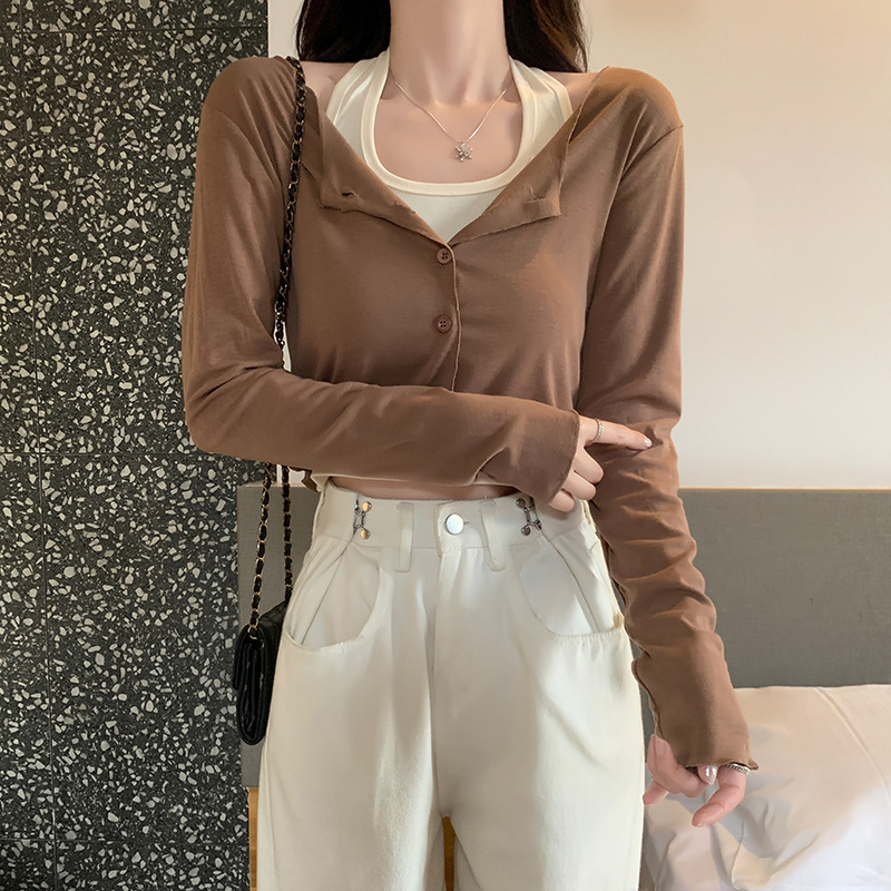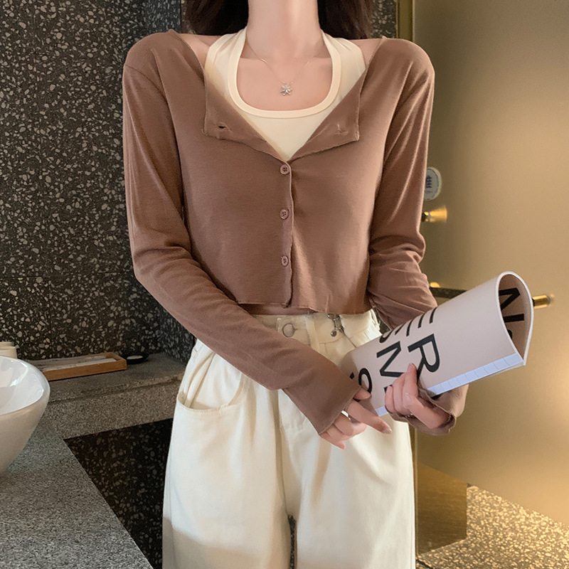 이른 가을 퓨어 디자인 센스 니쉬 2 피스 티셔츠 긴 소매 독특한 세련된 탑 여성을위한 달콤한 핫스토어 가기