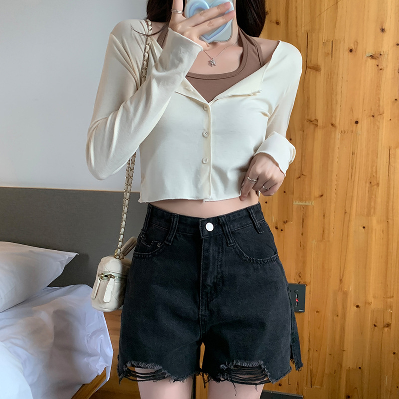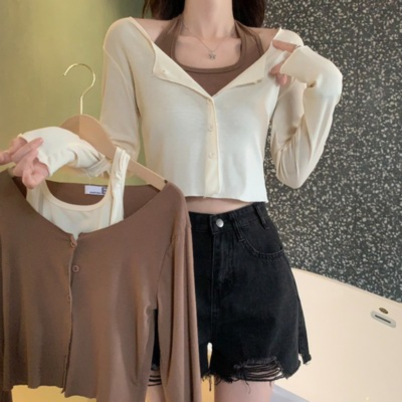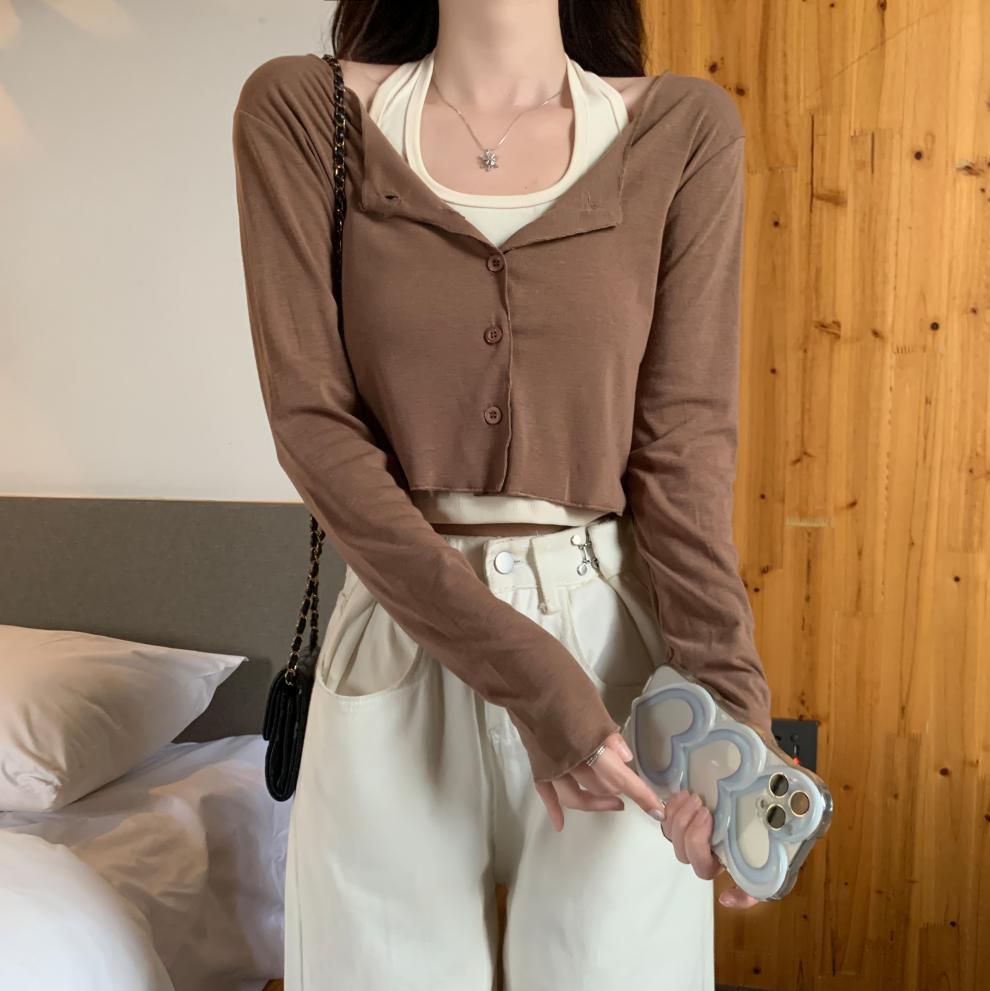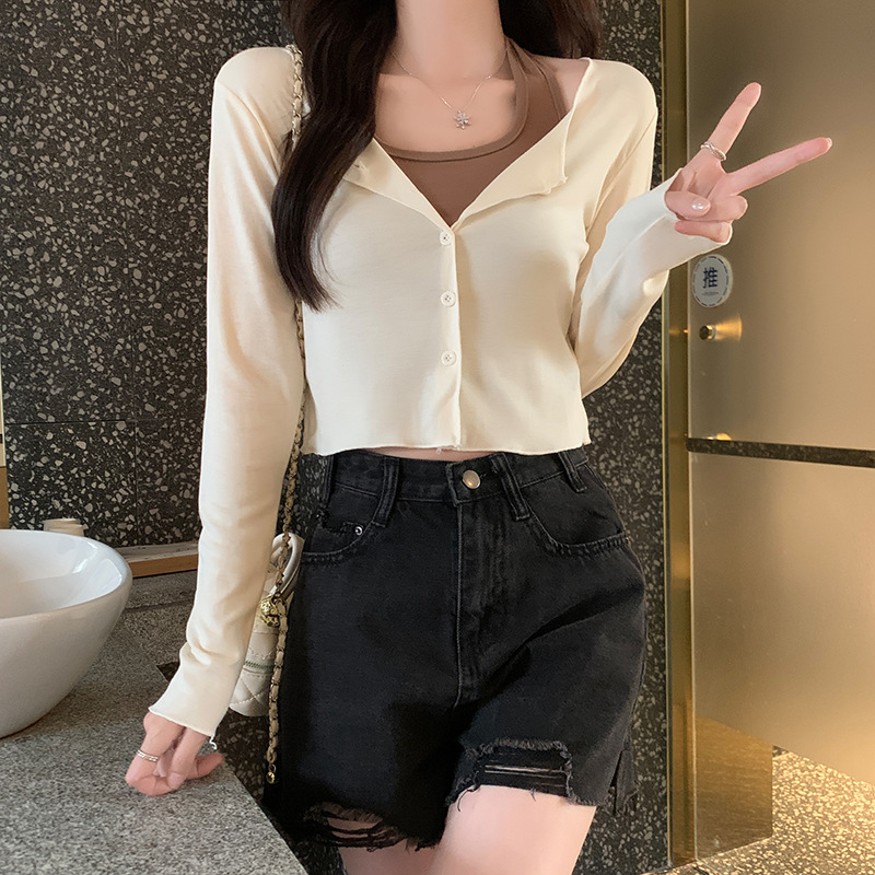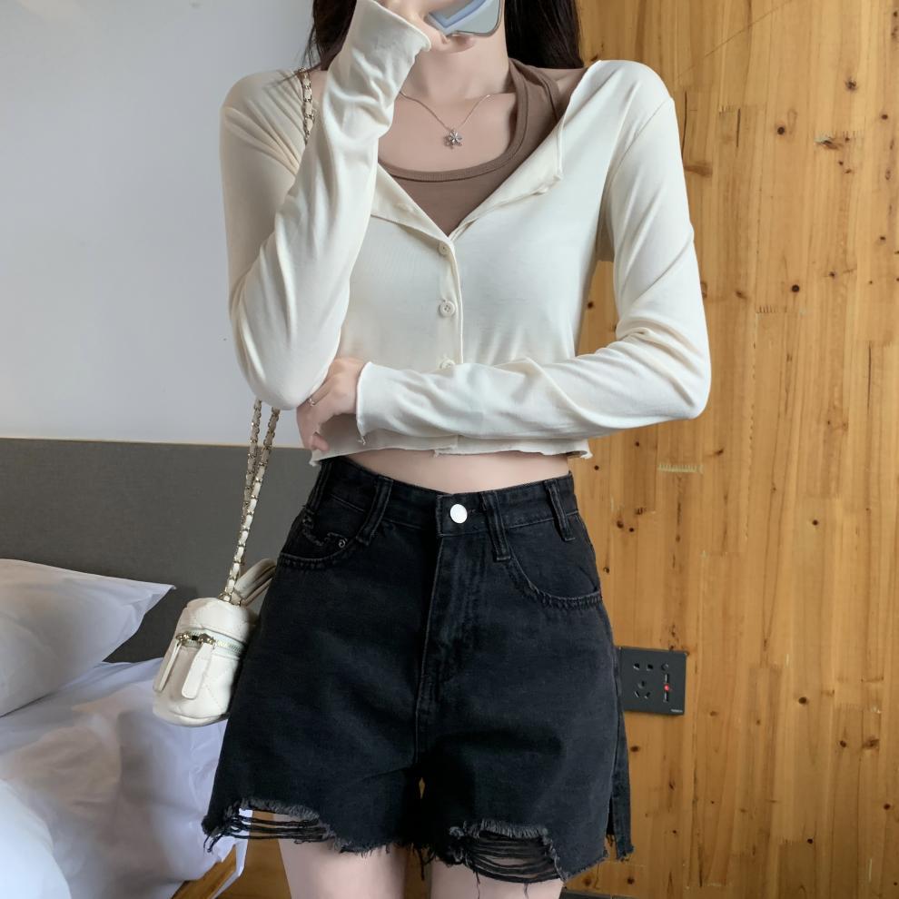 이른 가을 퓨어 디자인 센스 니쉬 2 피스 티셔츠 긴 소매 독특한 세련된 탑 여성을위한 달콤한 핫스토어 가기
