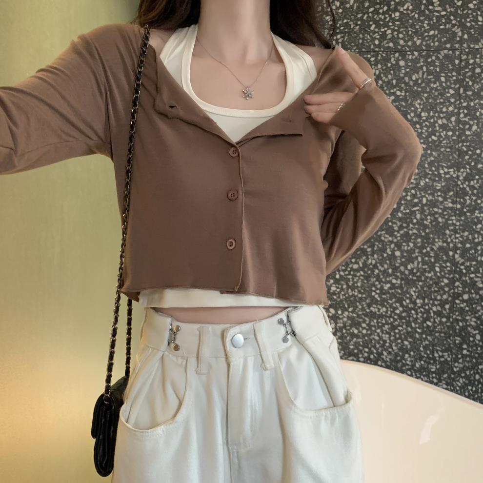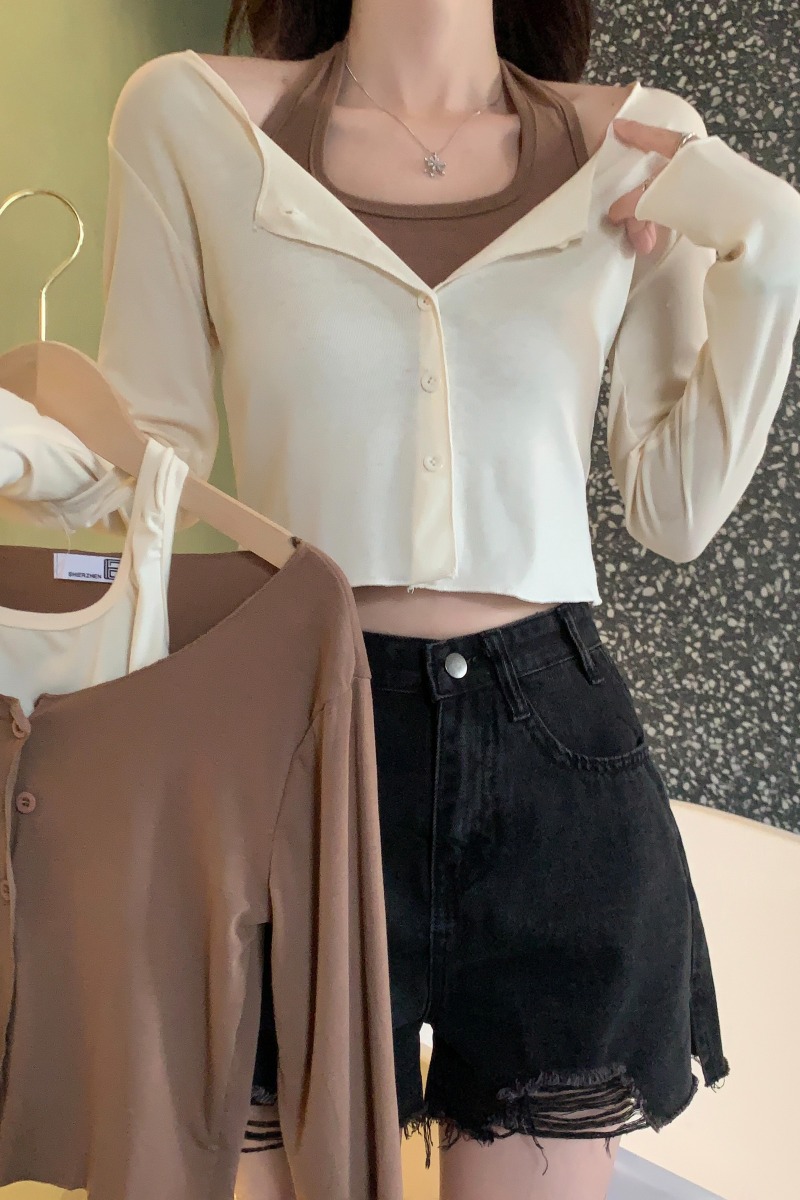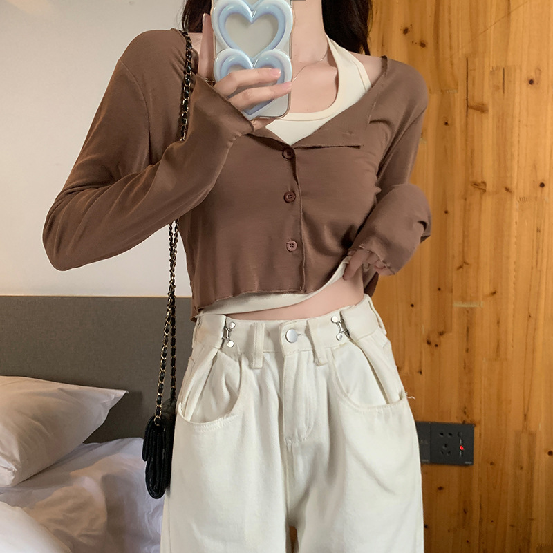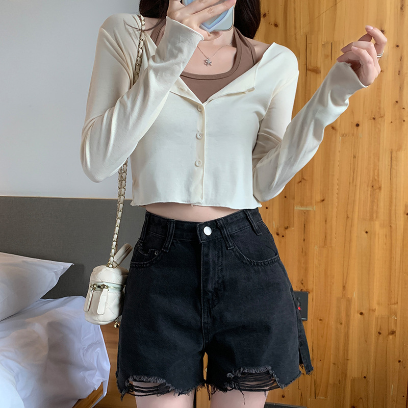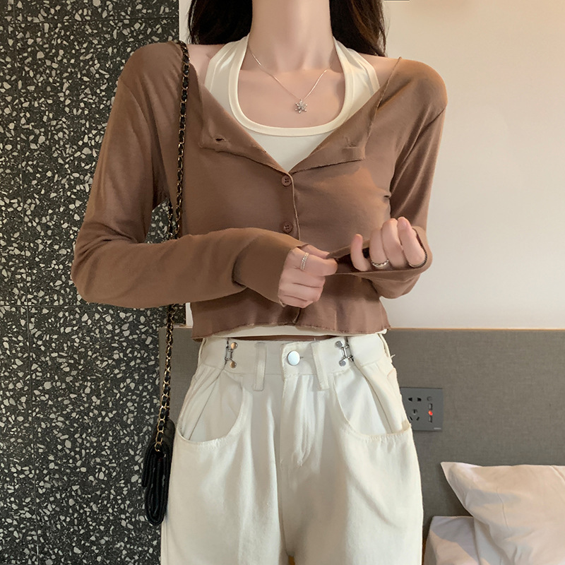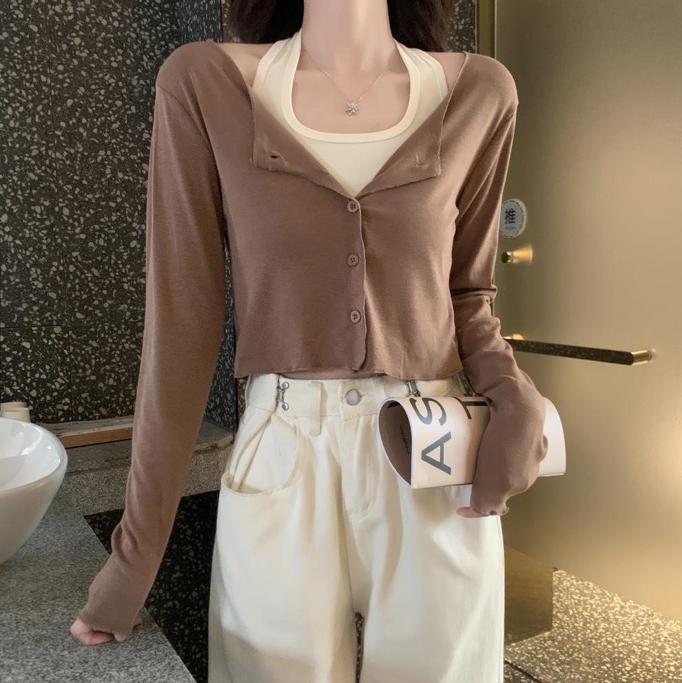 이른 가을 퓨어 디자인 센스 니쉬 2 피스 티셔츠 긴 소매 독특한 세련된 탑 여성을위한 달콤한 핫스토어 가기