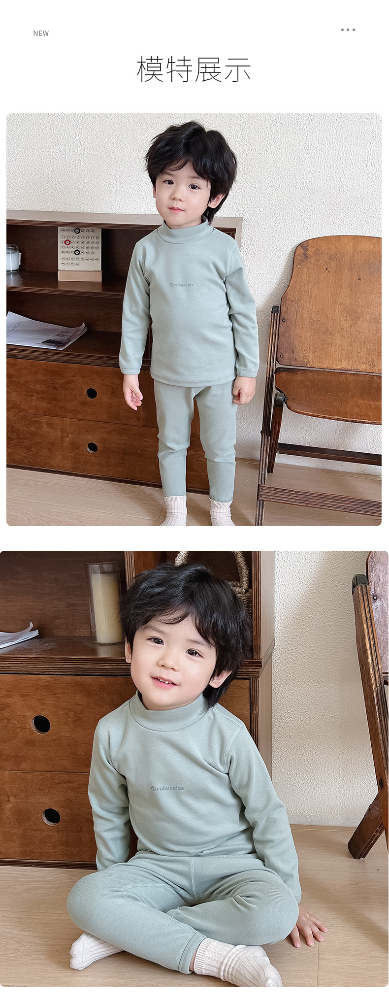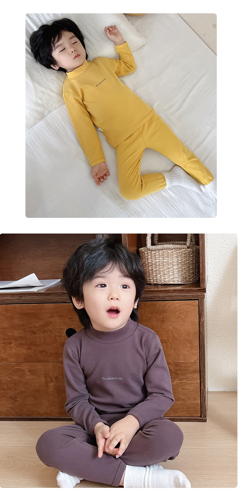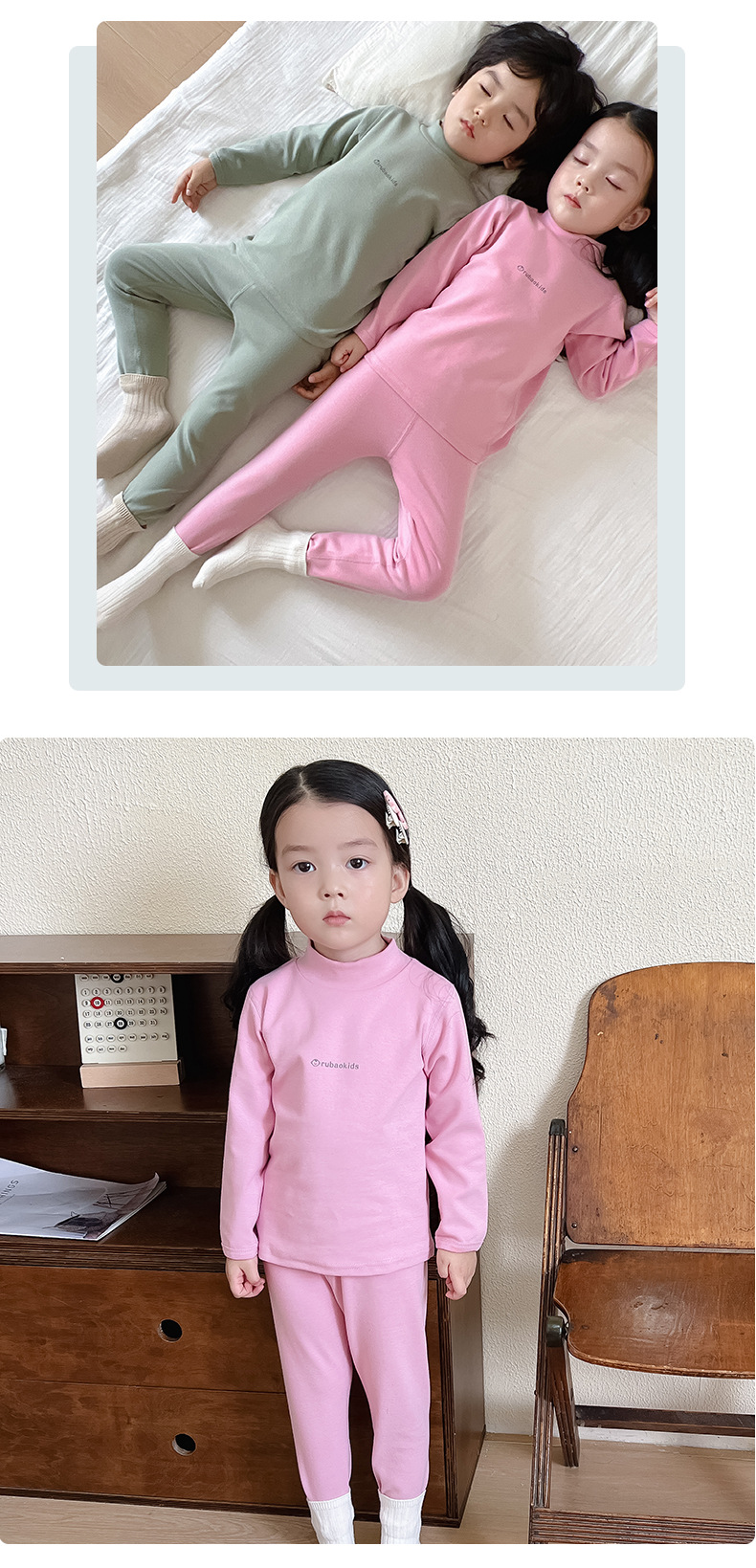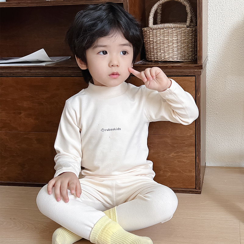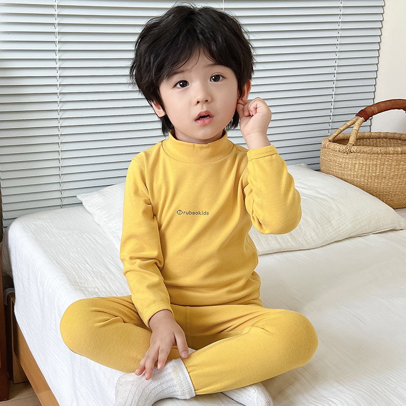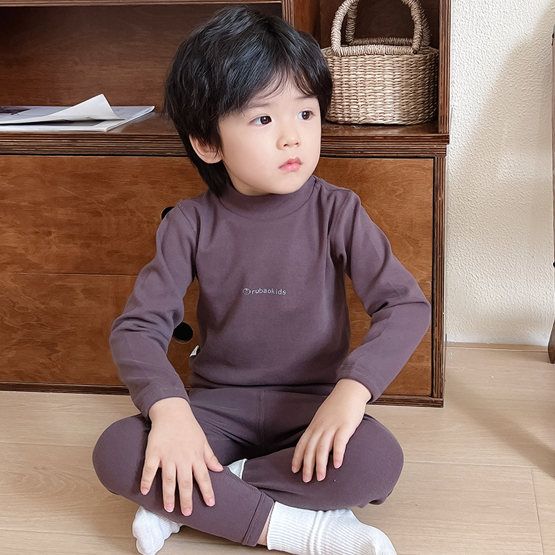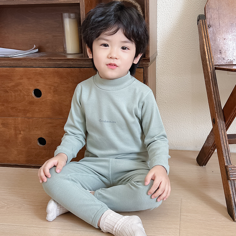 새로운 아기 집 옷 가을과 겨울 새로운 어린이 가을 옷 가을 바지 중간 칼라 따뜻한 긴팔 속옷 소년 소녀를위한 세트스토어 가기