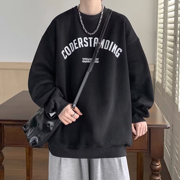 가을과 겨울 느슨한 유행 풀오버 기모 두꺼운 스웨터 남성 봄과 가을 청소년 고등학생 탑 재킷 트렌디스토어 가기