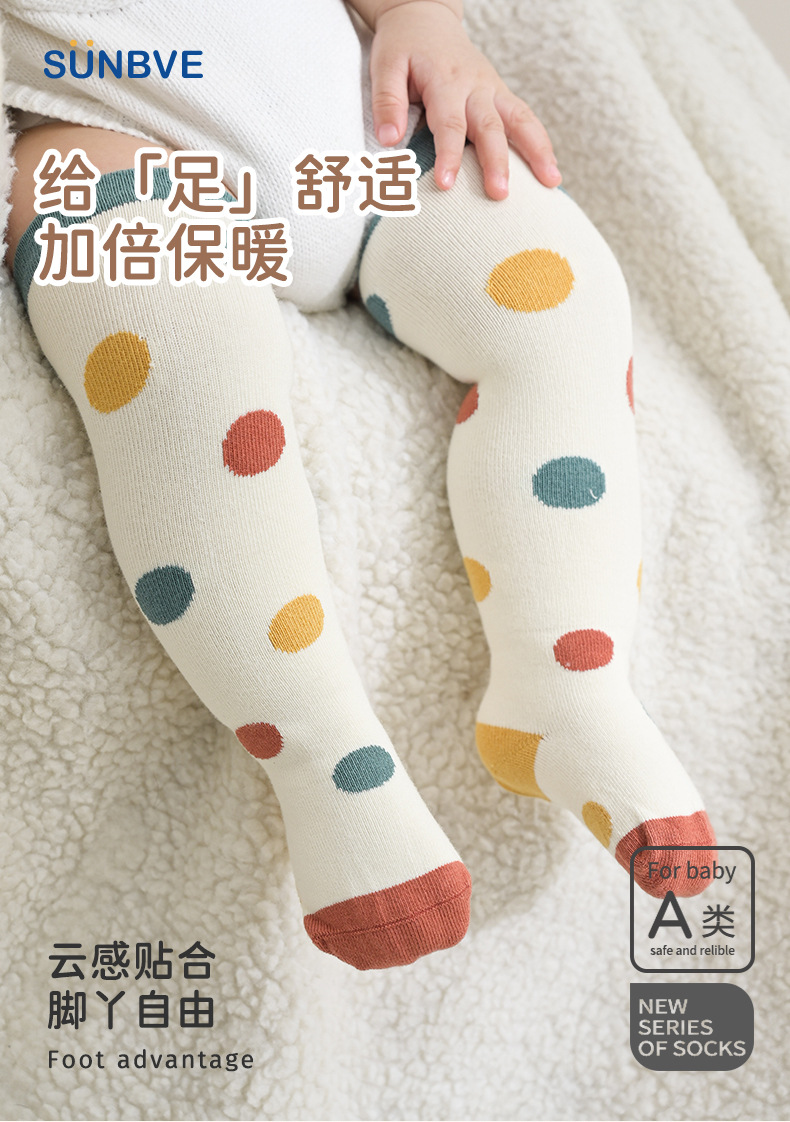 Xuwei 아기 스타킹 봄과 가을 및 겨울 면화 양말 신생아의 아기 무릎 위 양말은 다리를 밟지 않습니다 가을과 겨울 무릎 패드