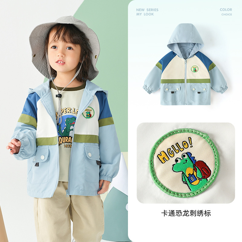 구와미 어린이 후드재킷 한국 수놓은 콘트라스트 러시 옷 방풍 지퍼 셔츠 소년 야외 카디건스토어 가기