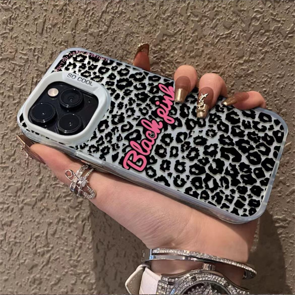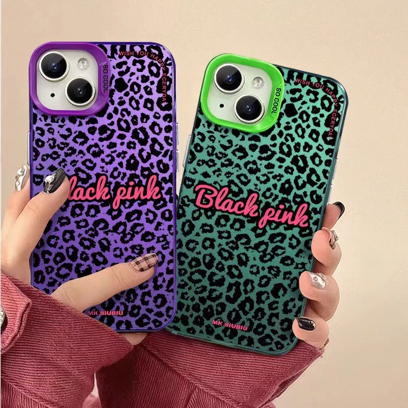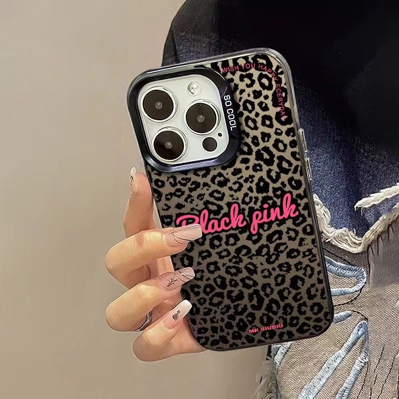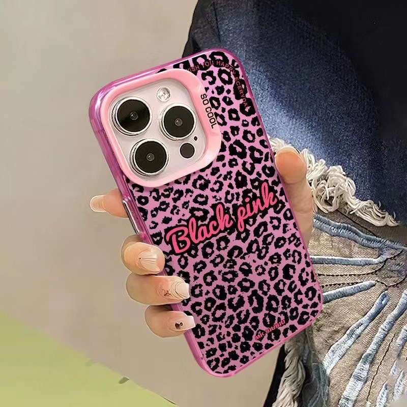 • 화려한 실버 쉘-핑크-전체 화면 표범 무늬