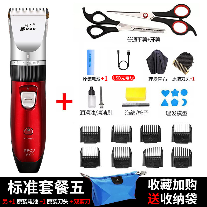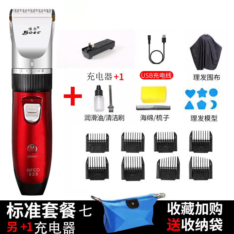 产品配件:包装盒,说明书,4个定位梳,一根USB充电线, 一瓶润滑油,一只清洁刷。