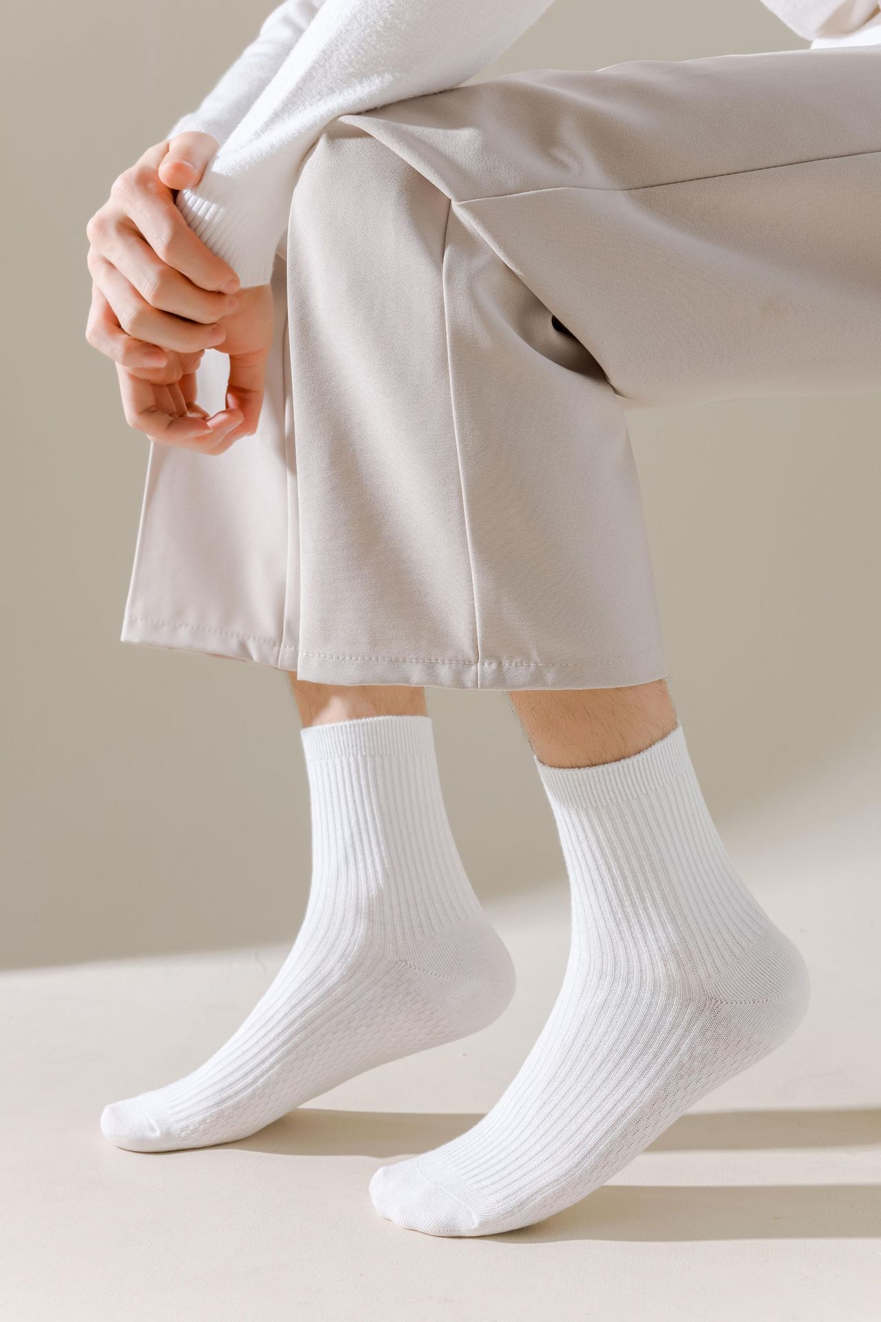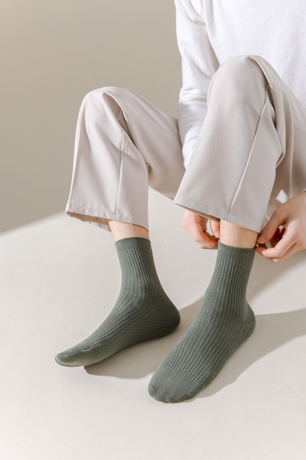 남성용 가을과 겨울 더블 니들 코튼 마사지 하단 미드 튜브 양말 뼈없는 땀 흡수 발 마사지 스포츠 양말 수직 스트립 스타킹스토어 가기