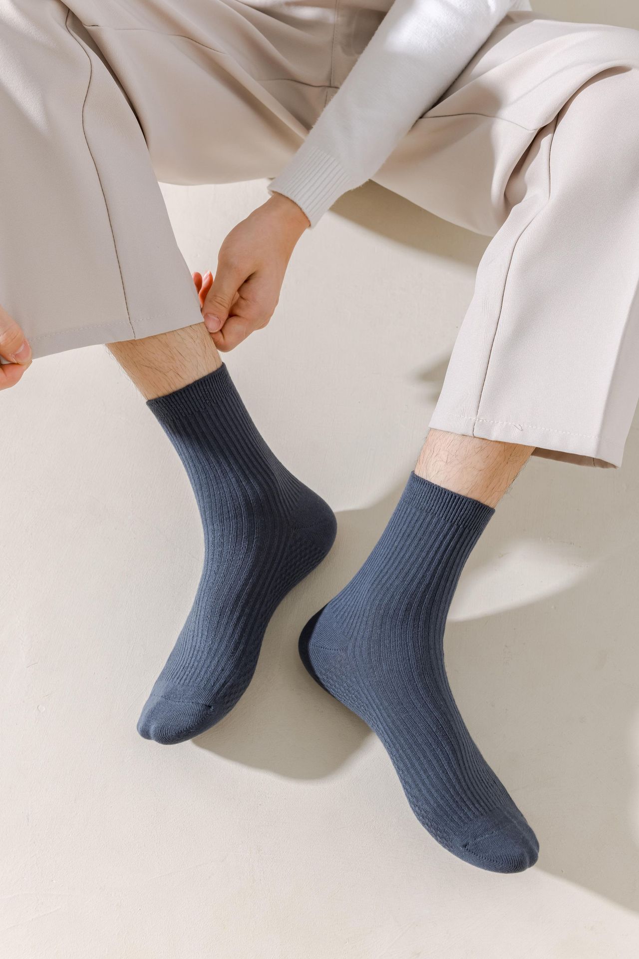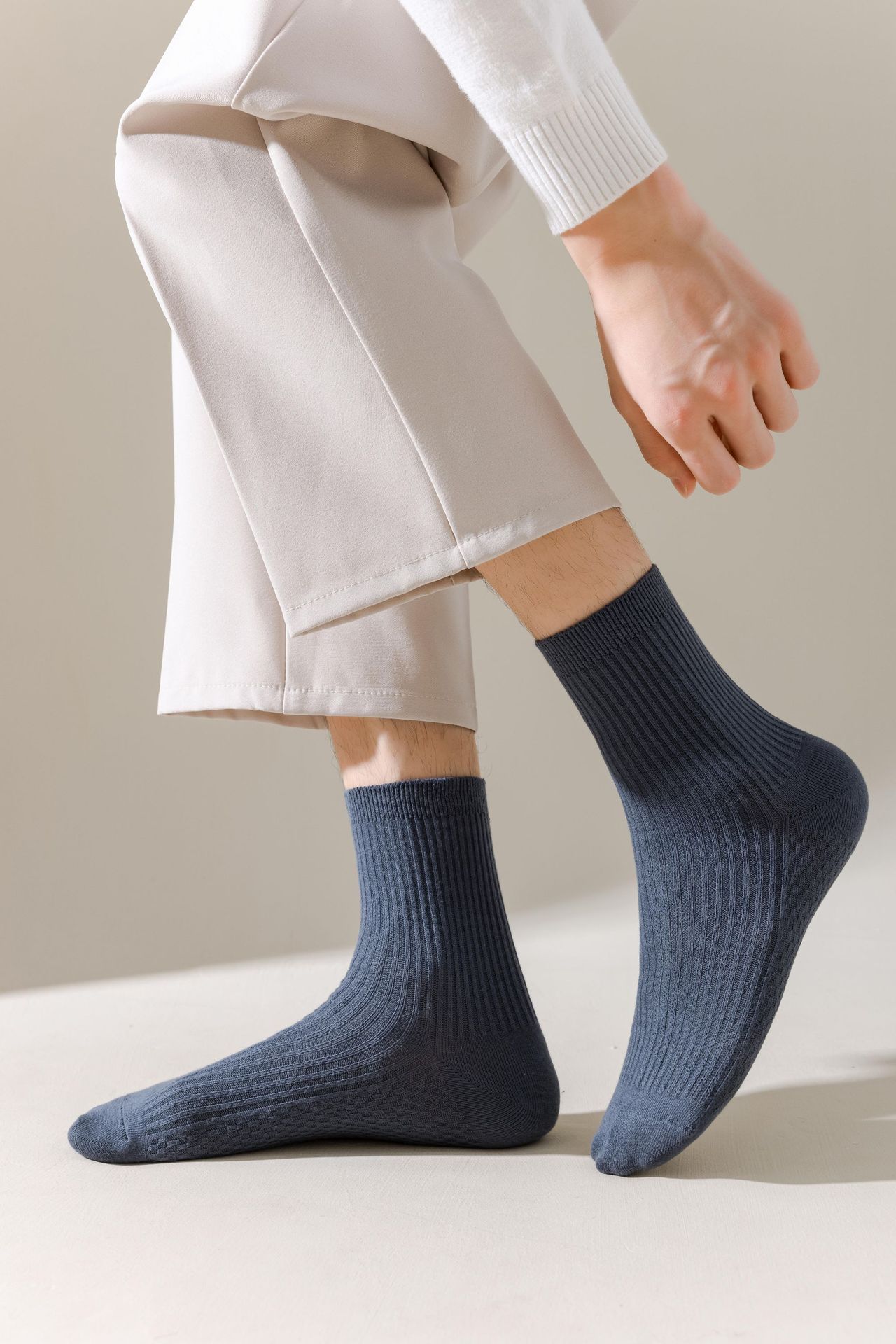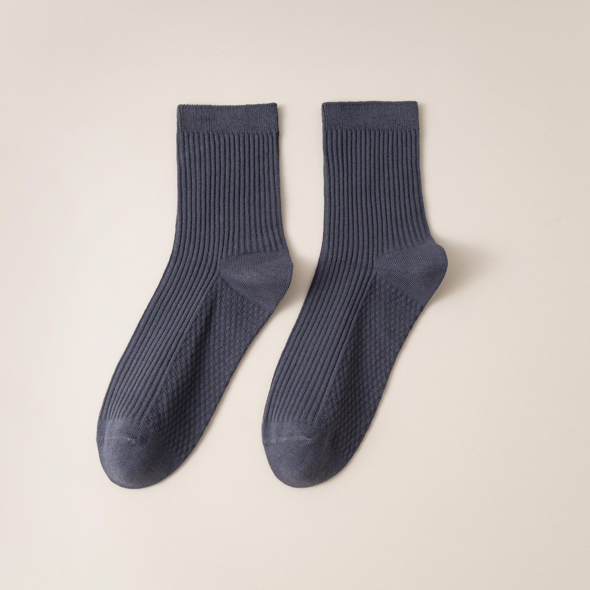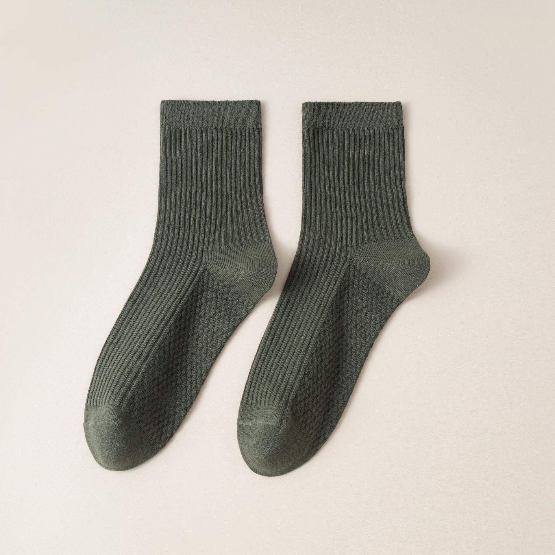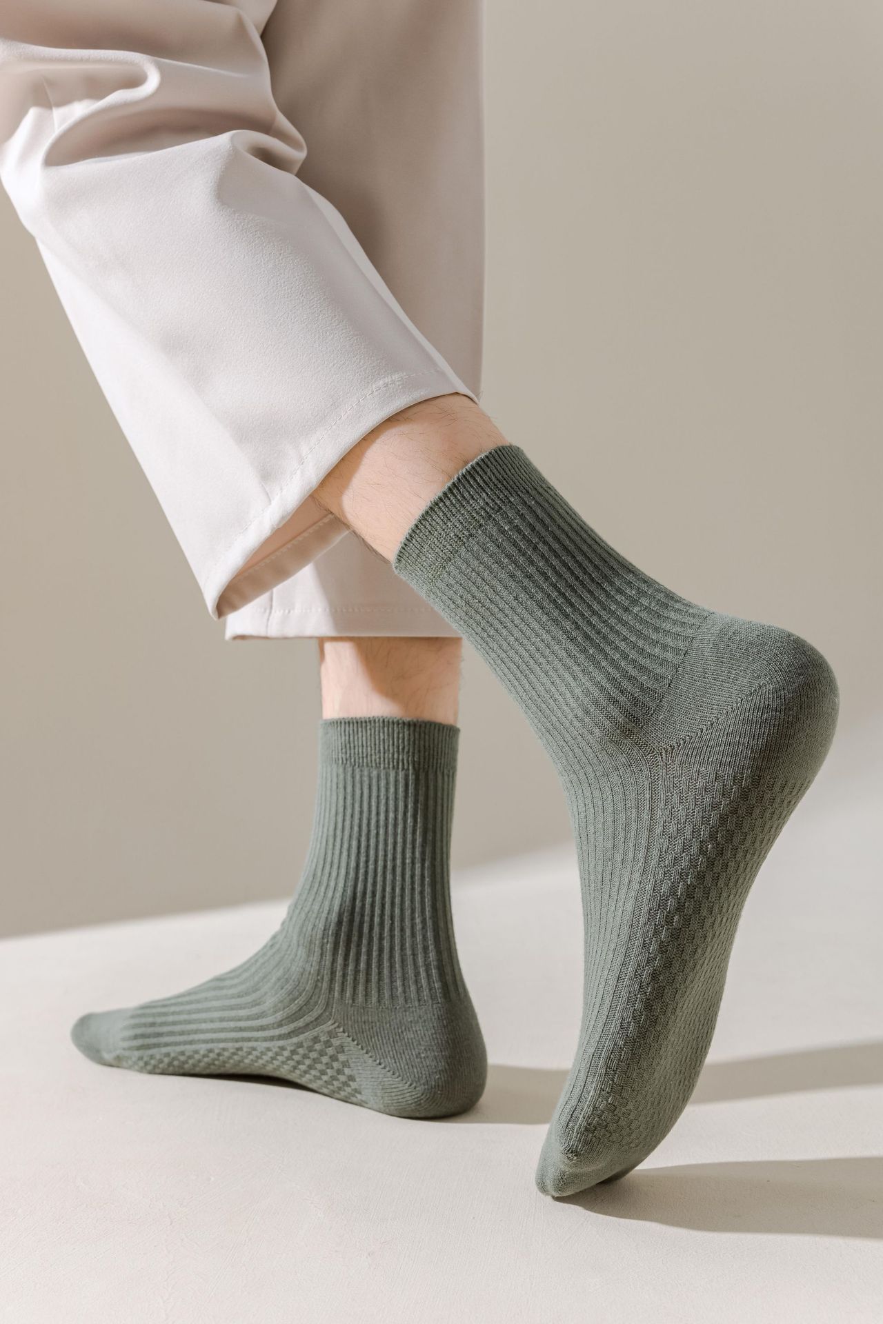 남성용 가을과 겨울 더블 니들 코튼 마사지 하단 미드 튜브 양말 뼈없는 땀 흡수 발 마사지 스포츠 양말 수직 스트립 스타킹