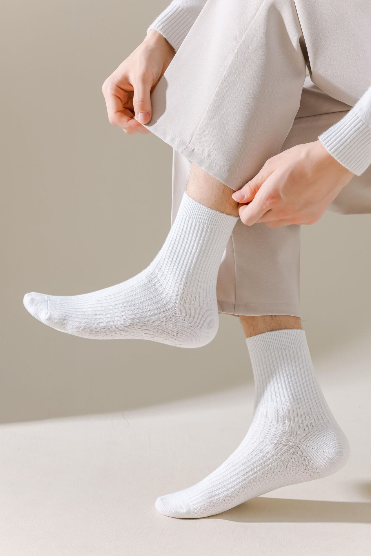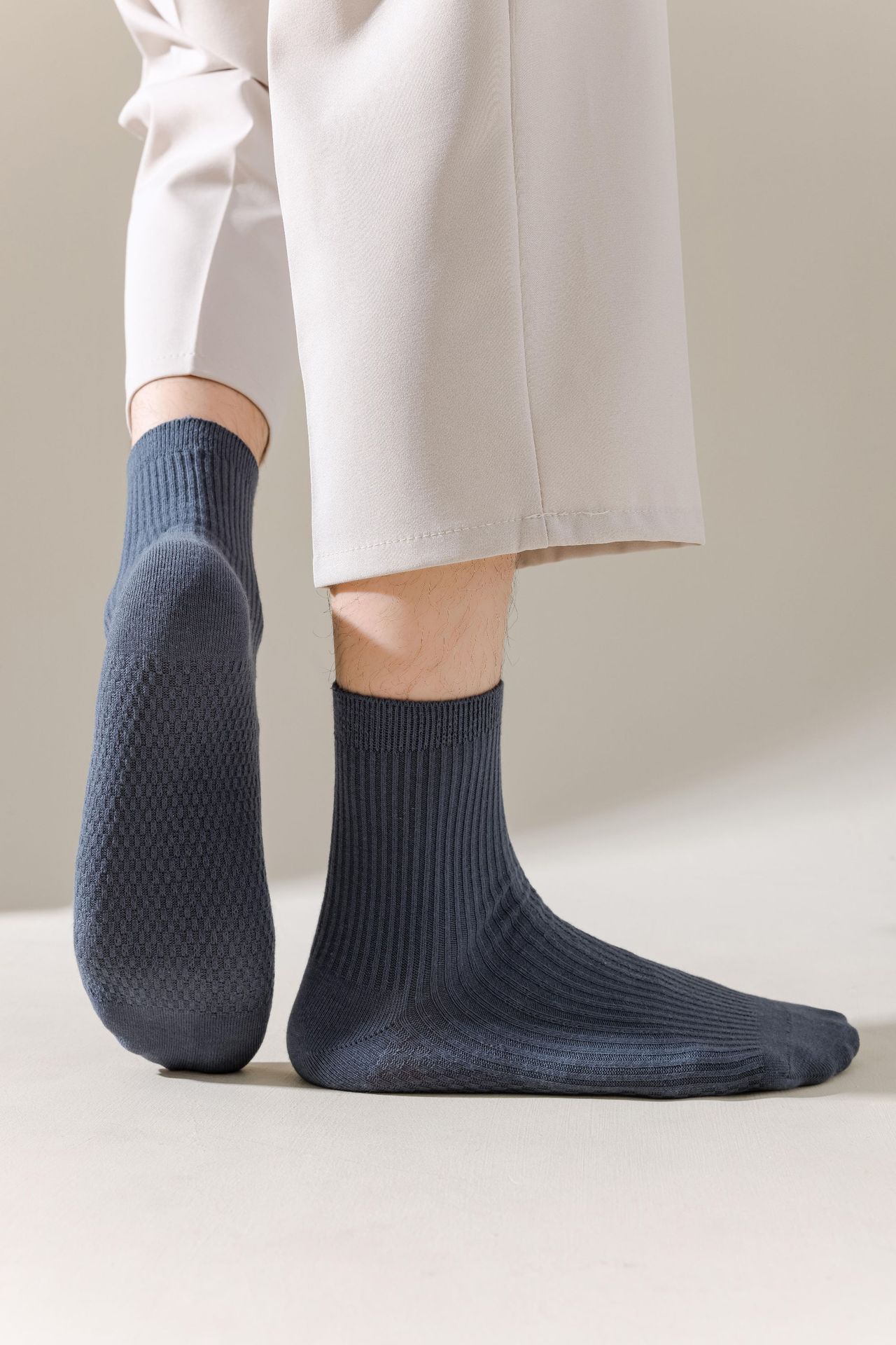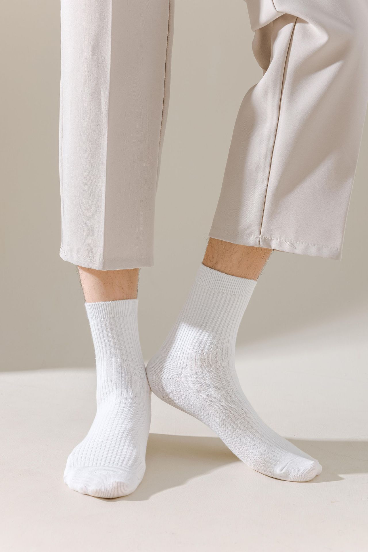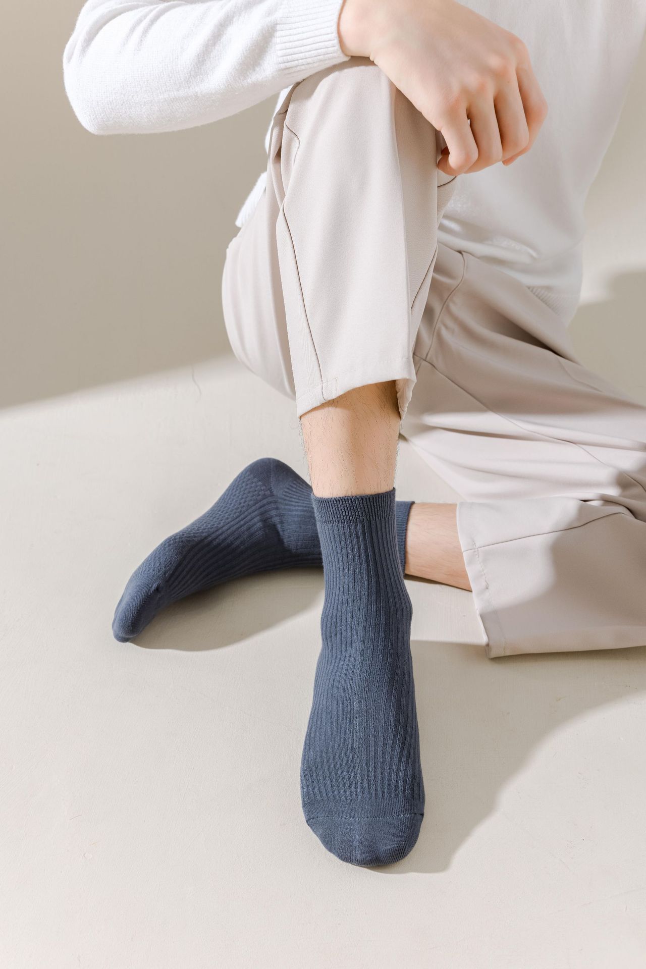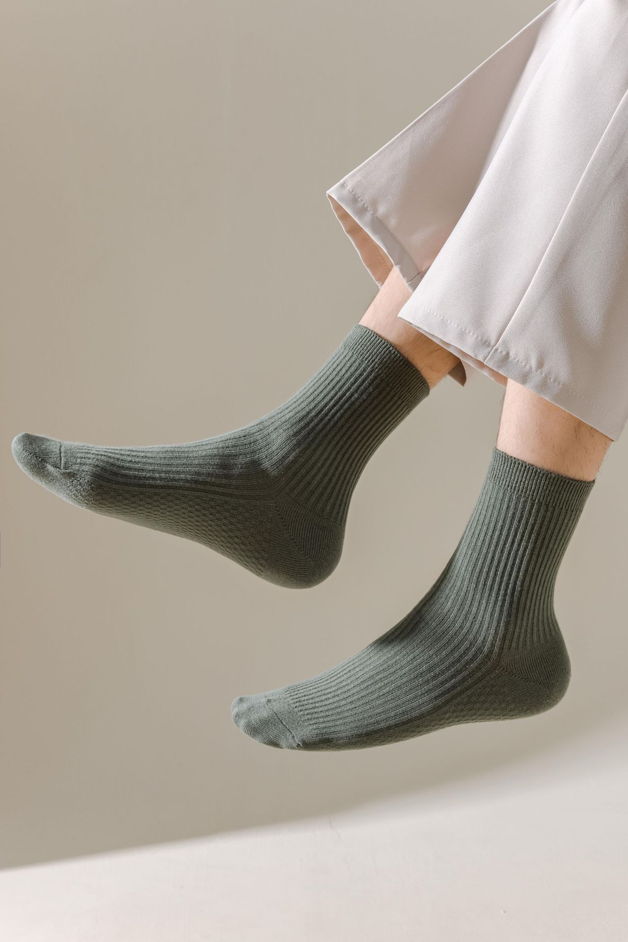 남성용 가을과 겨울 더블 니들 코튼 마사지 하단 미드 튜브 양말 뼈없는 땀 흡수 발 마사지 스포츠 양말 수직 스트립 스타킹