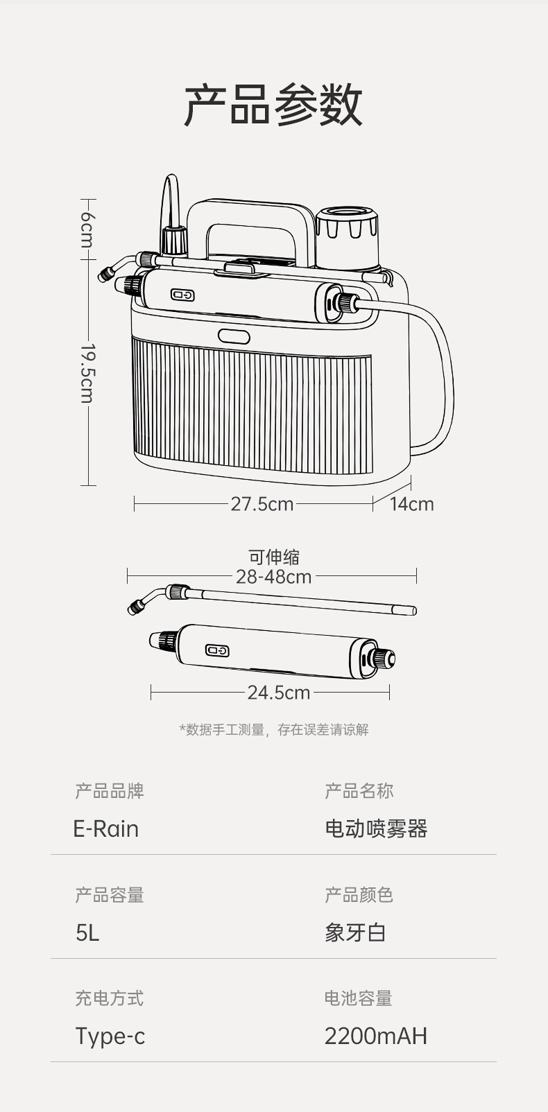 • Yirun 5L 전기 분무기 + 연장 튜브 3m개