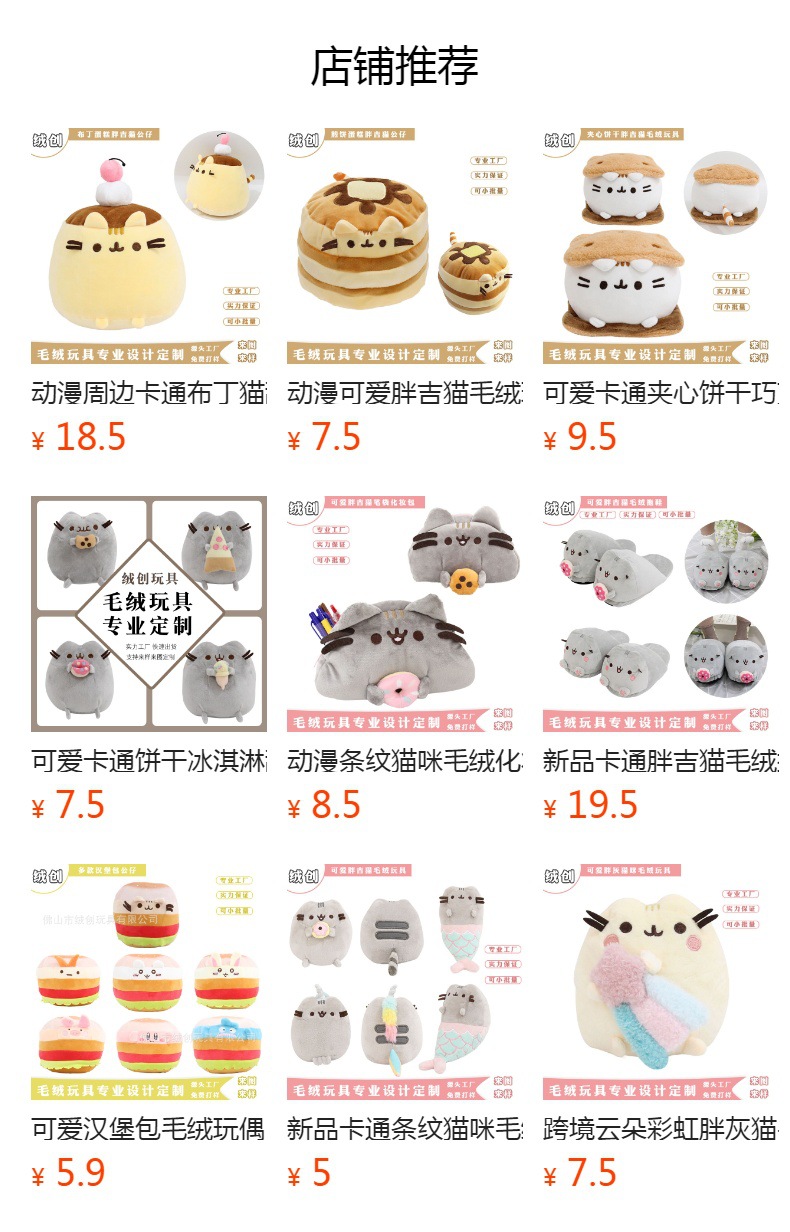 【名称】巧克力牛奶猫毛绒公仔奶茶彩虹方块蛋糕饼干猫胖吉猫玩偶