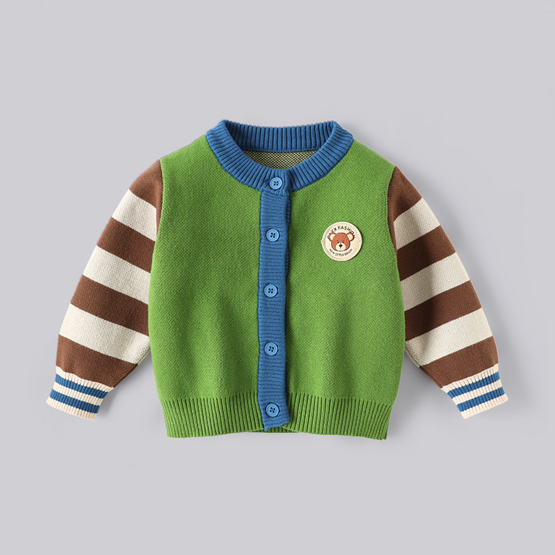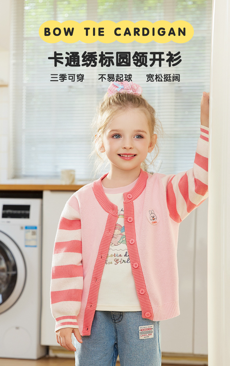 어린이용 가디건 스웨터 봄 가을 한국판 만화 자수 로고 라운드넥 코트 이중 순면 스웨터 여아용 A급 스웨터스토어 가기