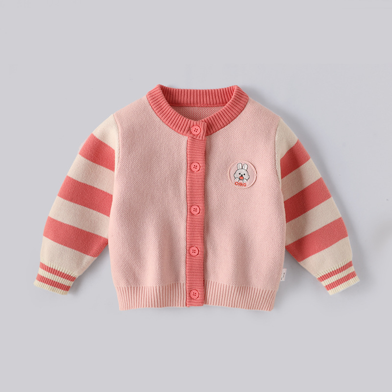 어린이용 가디건 스웨터 봄 가을 한국판 만화 자수 로고 라운드넥 코트 이중 순면 스웨터 여아용 A급 스웨터