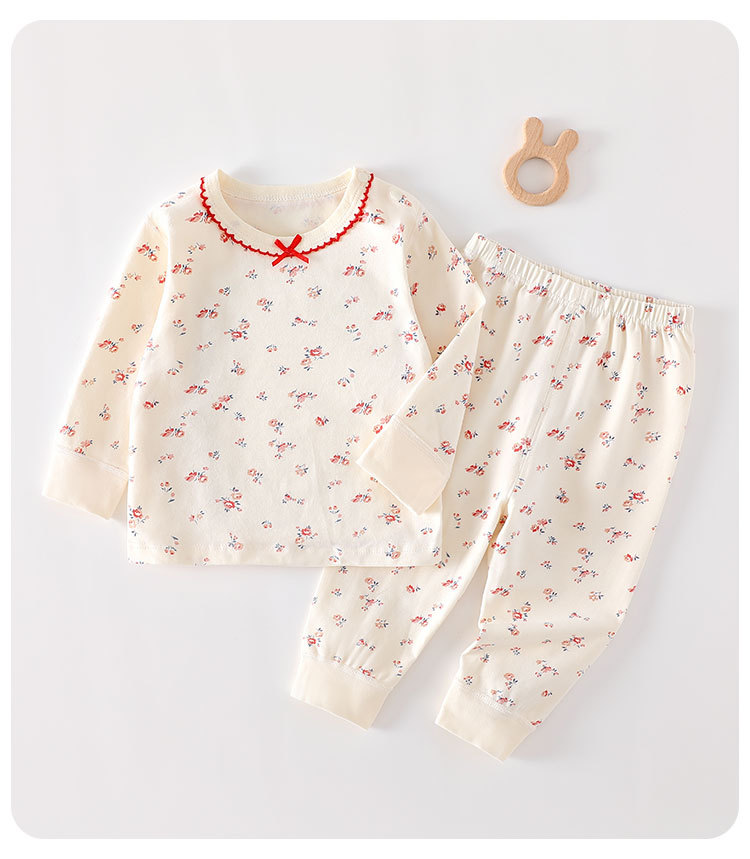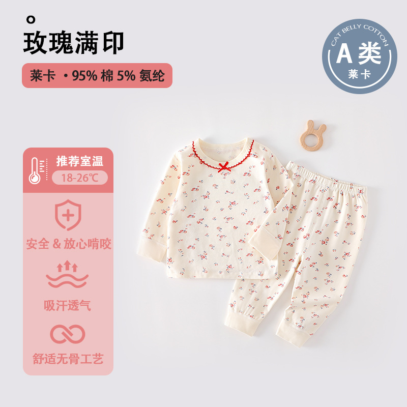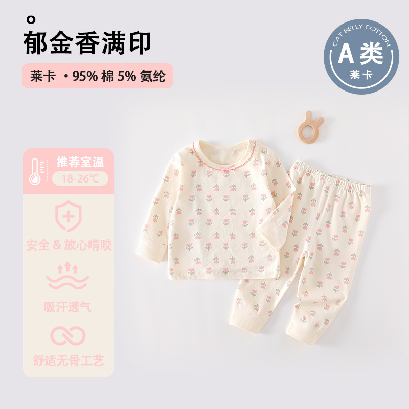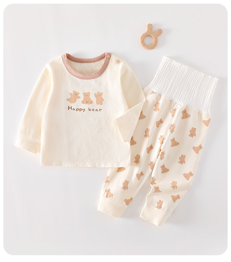 높은 허리 배 보호 분할 세트 순면 클래스 신생아 옷 아기의 봄과 가을 잠옷 아기의 가을 옷과 바지