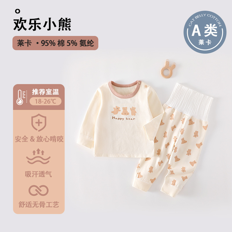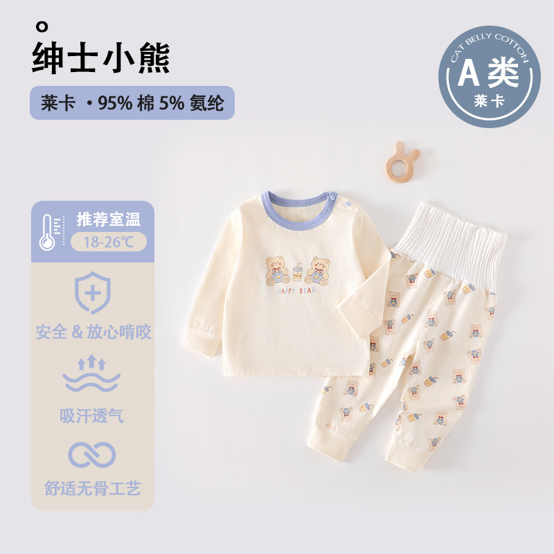 높은 허리 배 보호 분할 세트 순면 클래스 신생아 옷 아기의 봄과 가을 잠옷 아기의 가을 옷과 바지스토어 가기