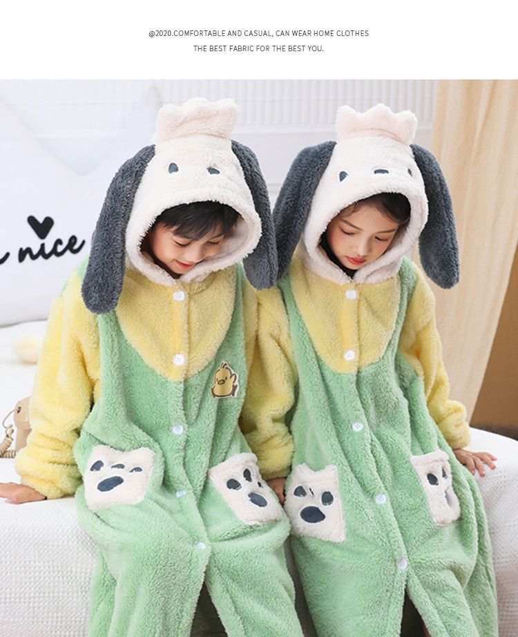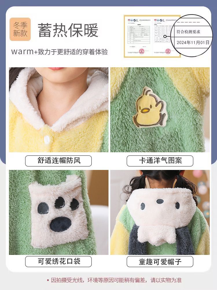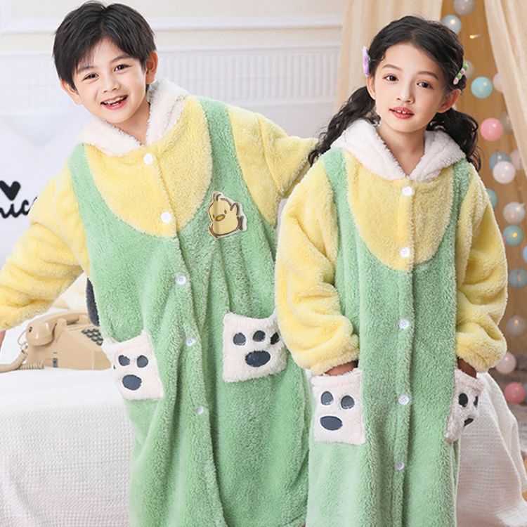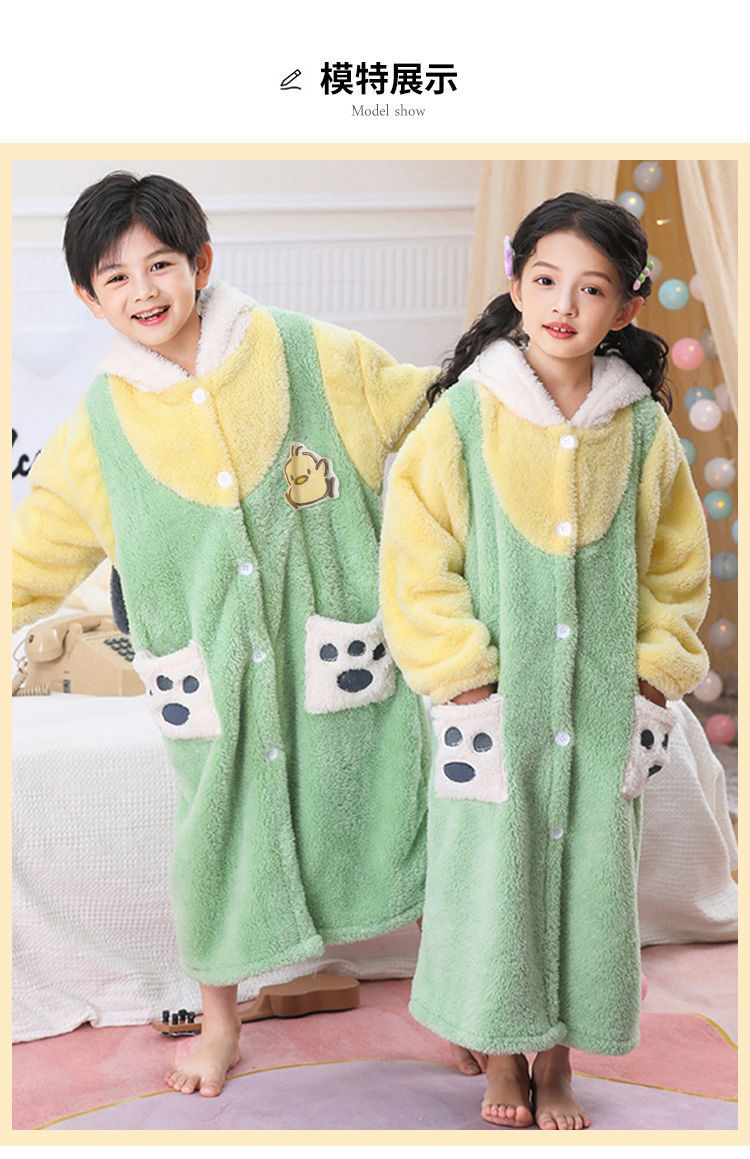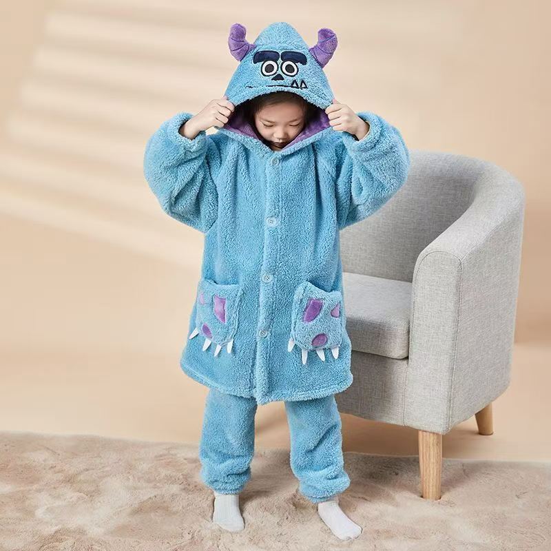 겨울 어린이 잠옷 소년과 소녀 후드 잠옷 목욕 가운 기모 두꺼운 만화 의상 세트스토어 가기