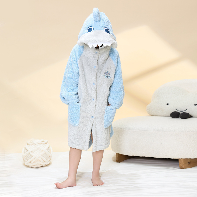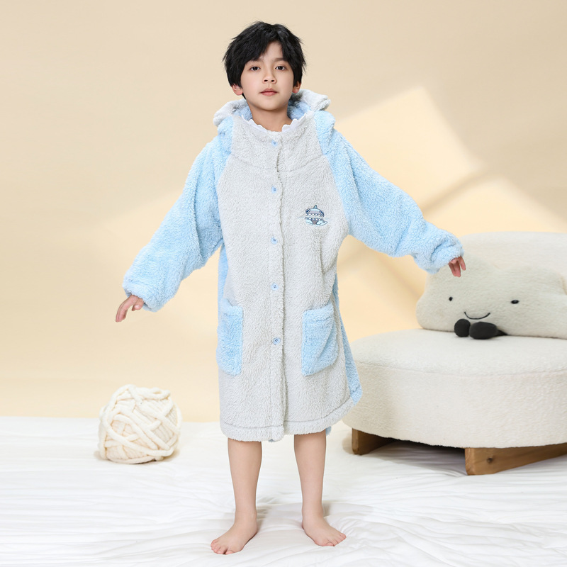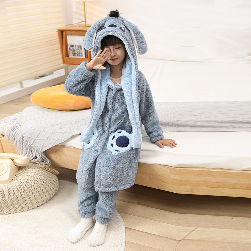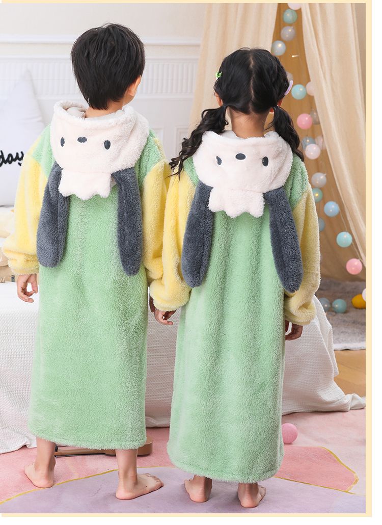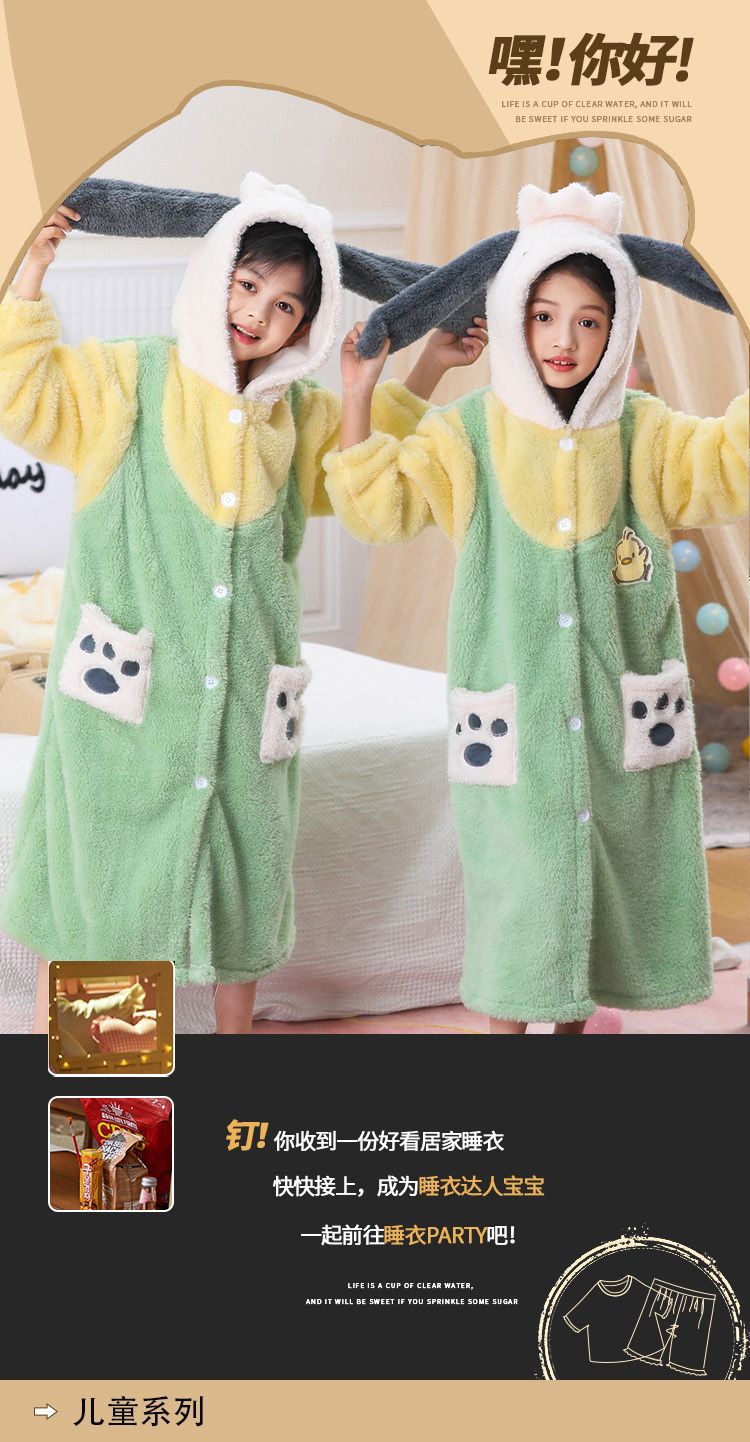 겨울 어린이 잠옷 소년과 소녀 후드 잠옷 목욕 가운 기모 두꺼운 만화 의상 세트스토어 가기