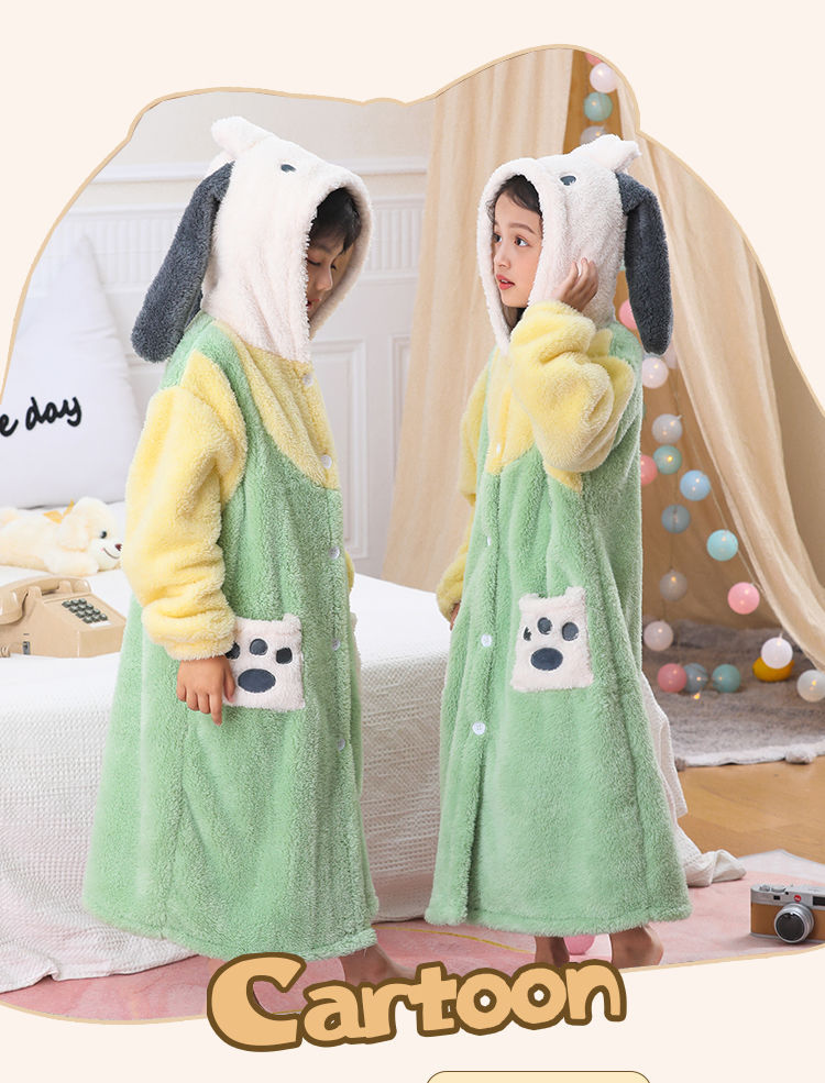 겨울 어린이 잠옷 소년과 소녀 후드 잠옷 목욕 가운 기모 두꺼운 만화 의상 세트