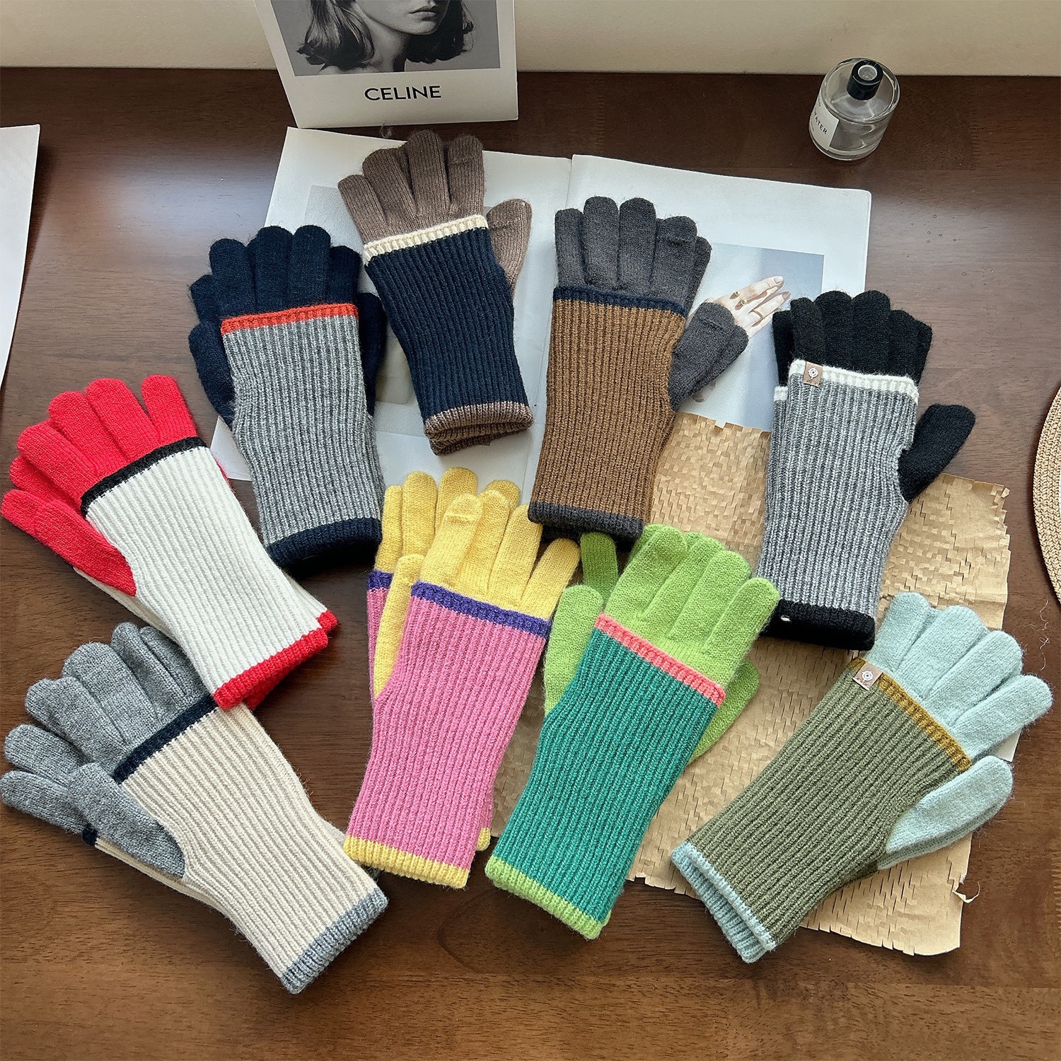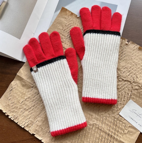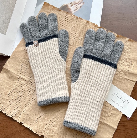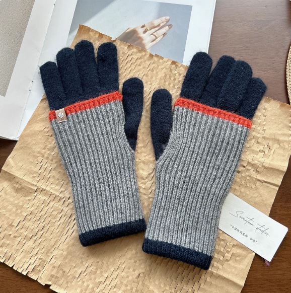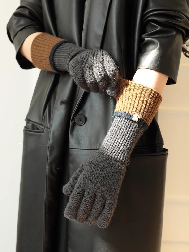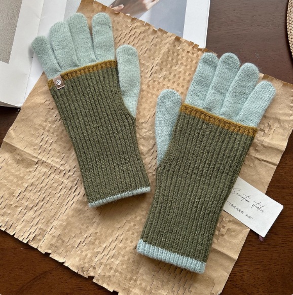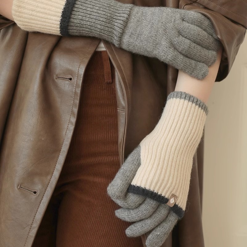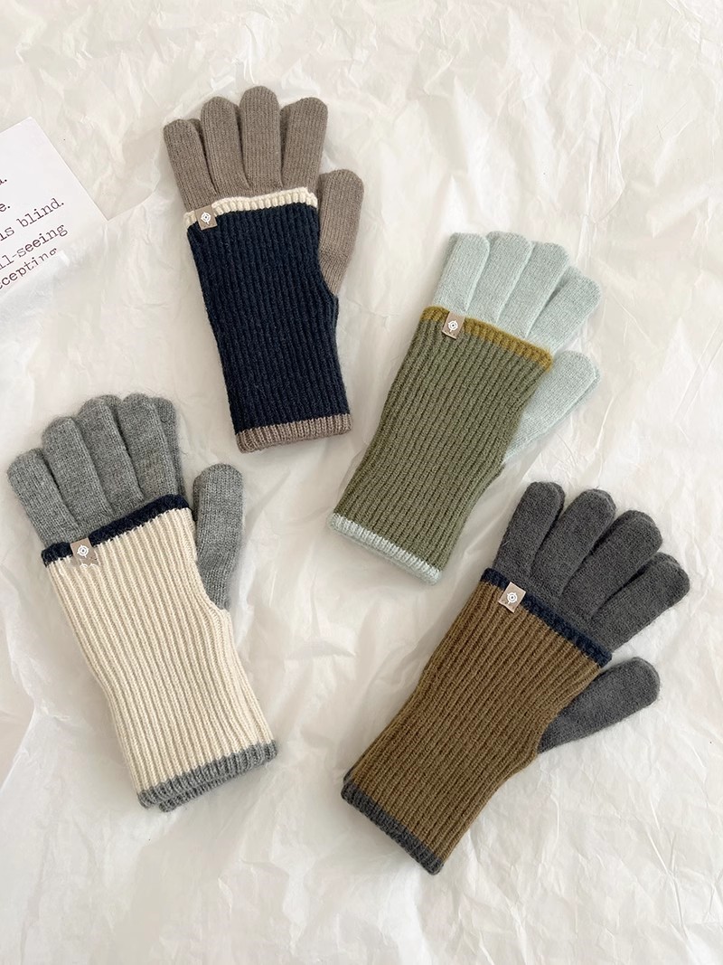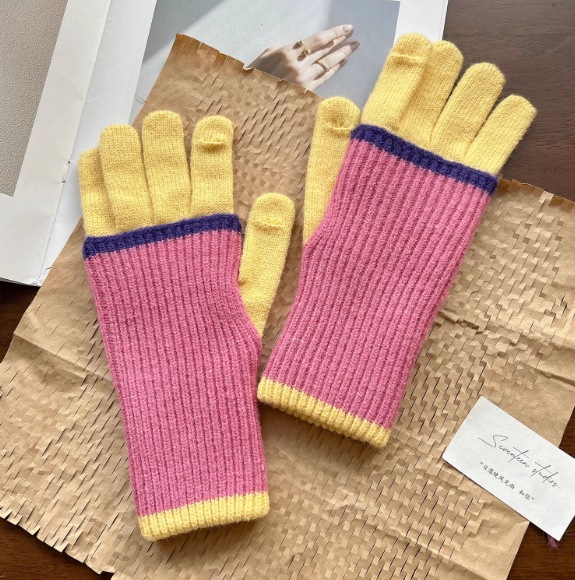 2024 새로운 한국 컬러 매칭 가변 긴 울 컬러 매칭 따뜻한 장갑 여성의 다섯 손가락 터치 스크린 라이딩