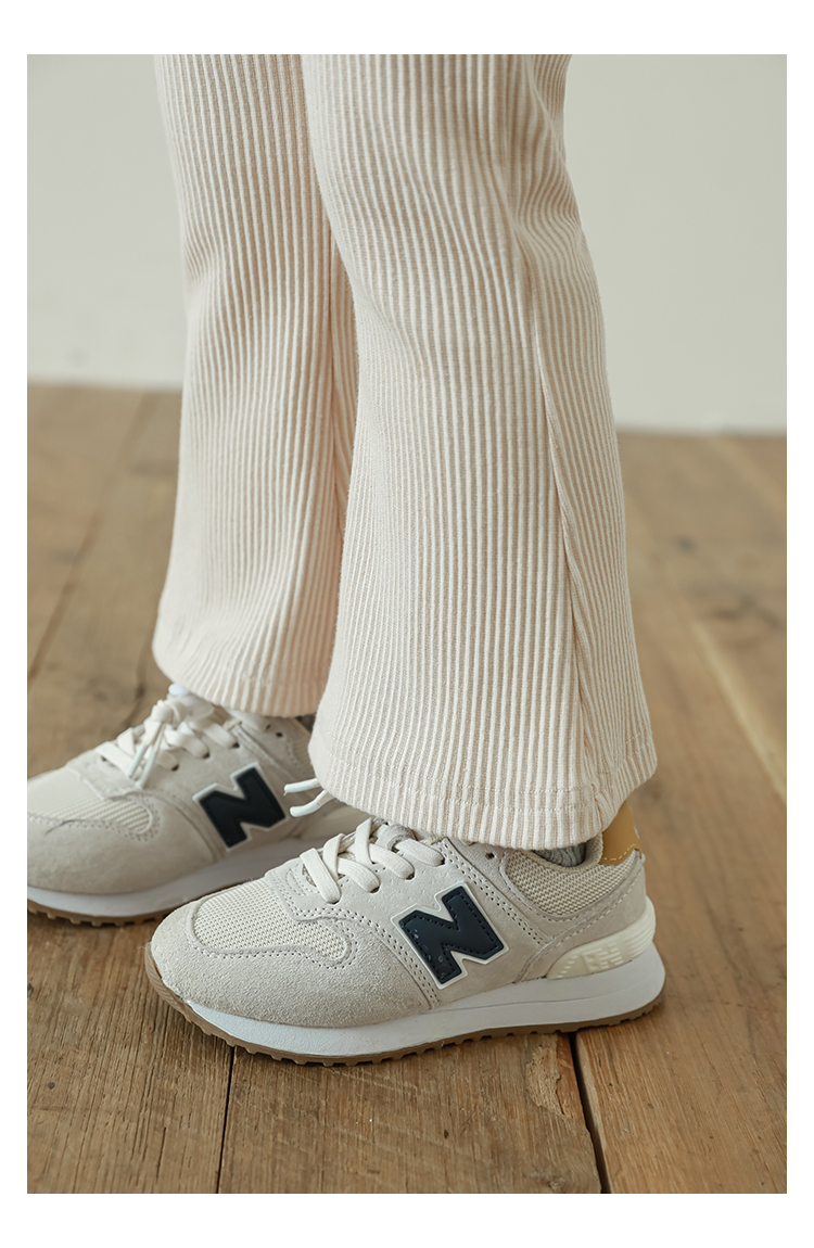 Wulibu 여성용 스트라이프 니트 플레어 팬츠 2025 가을 스타일 귀엽고 가벼우며 스마트한 솔리드 컬러 레깅스스토어 가기
