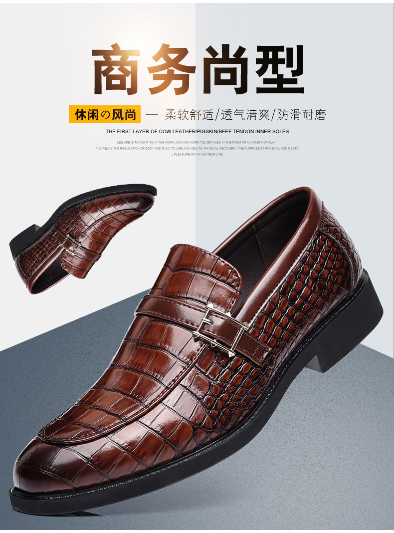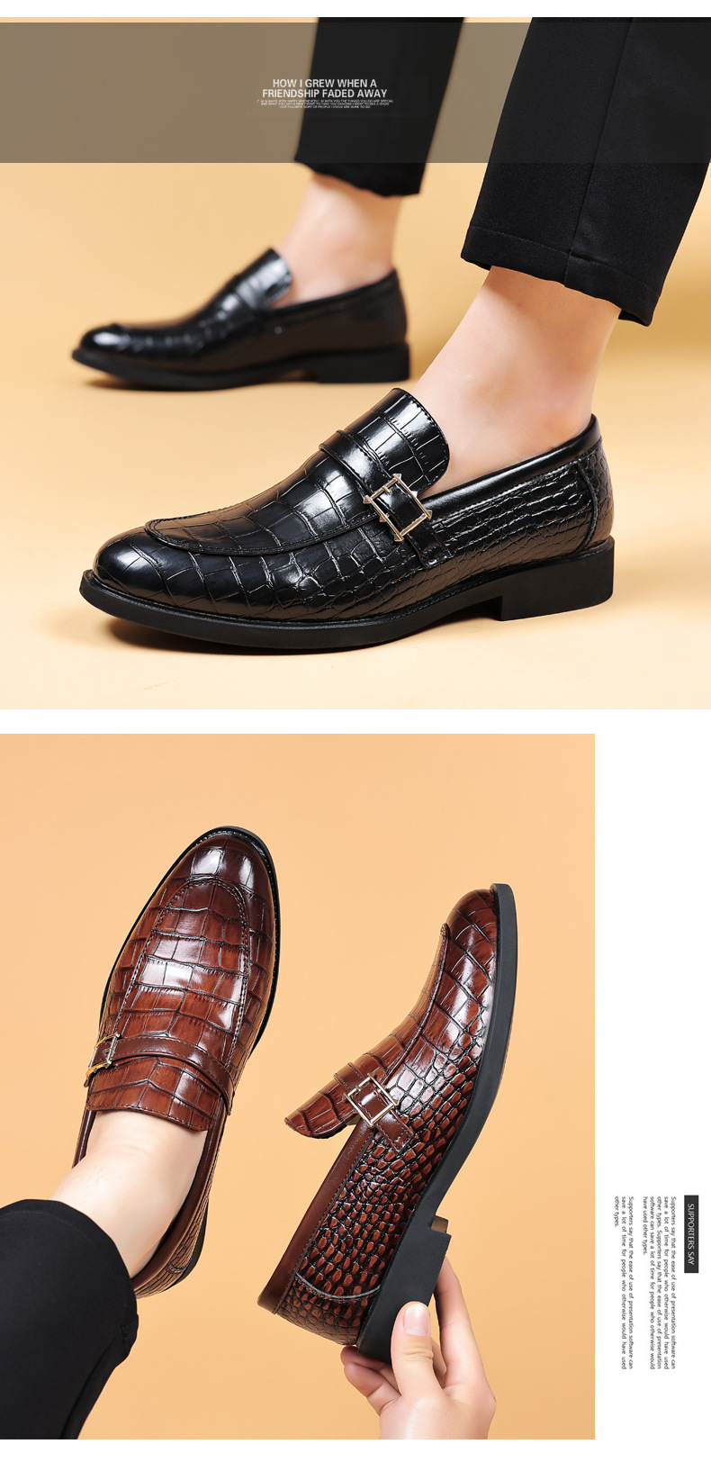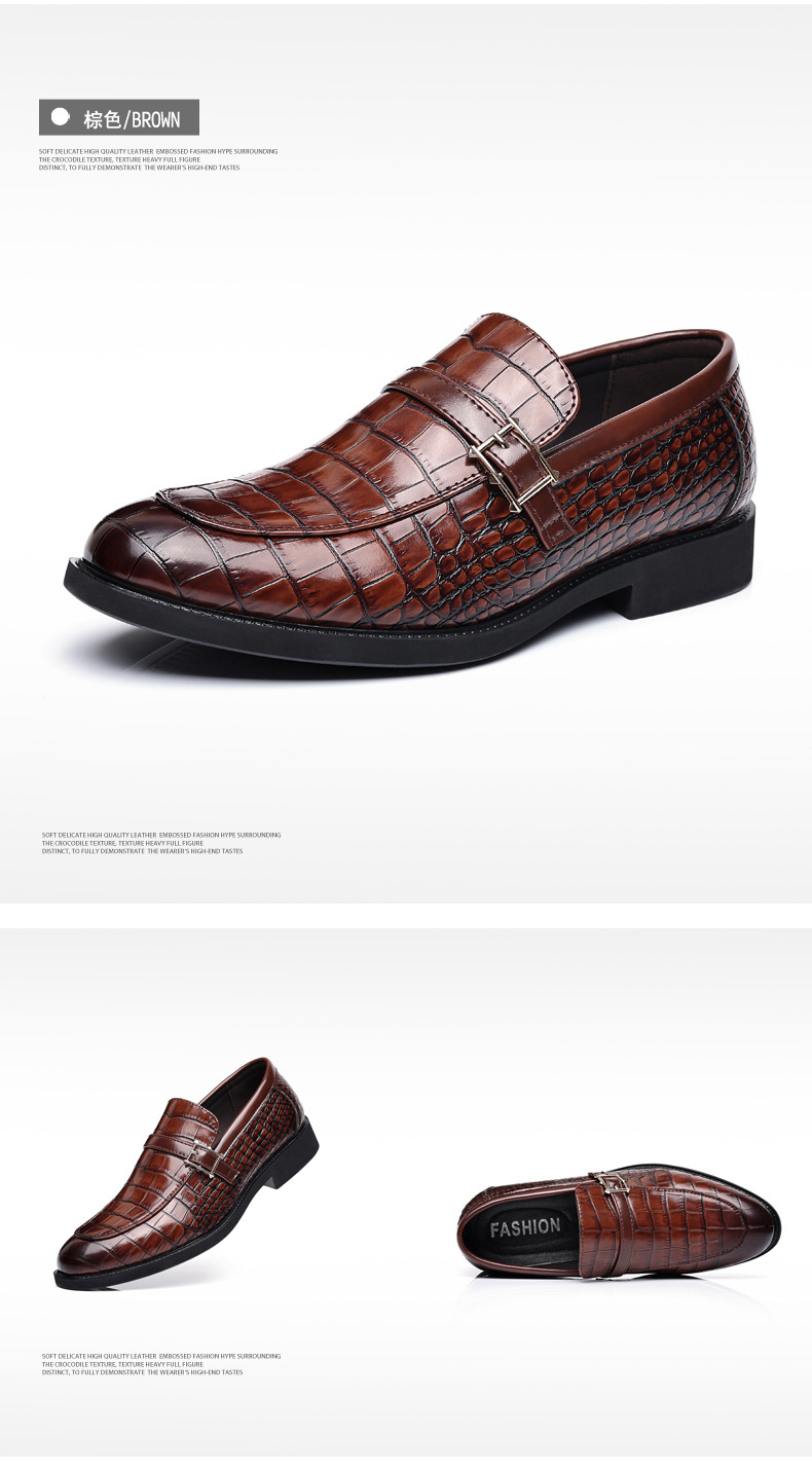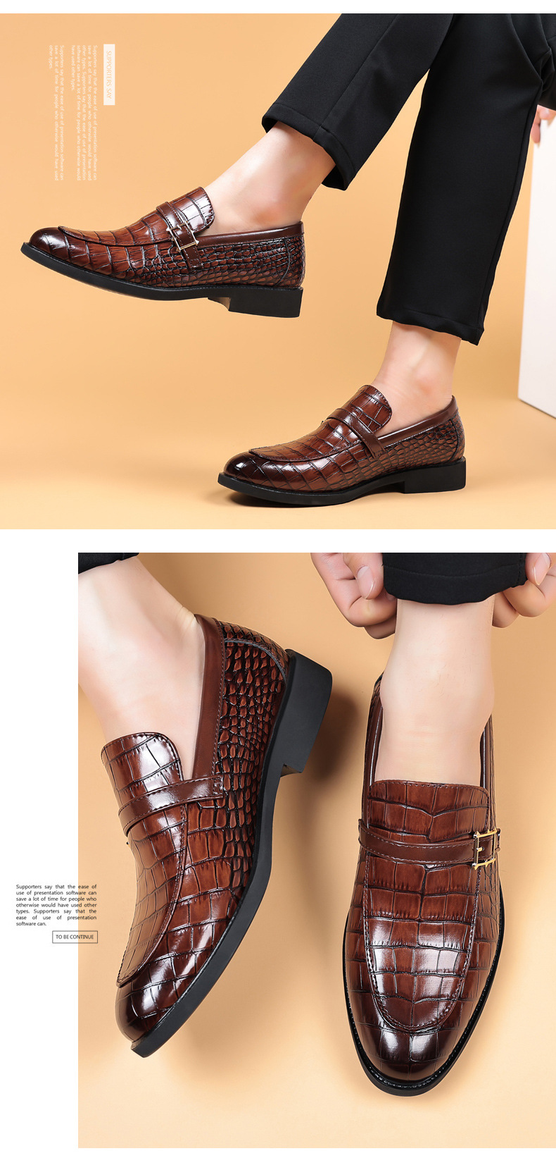 가죽 신발 남성 비즈니스 원피스 캐주얼 신발 악어 패턴 남성 슬립 온 영국 한국 스타일 포인팅 발가락 캐주얼 플러스 사이즈 신발