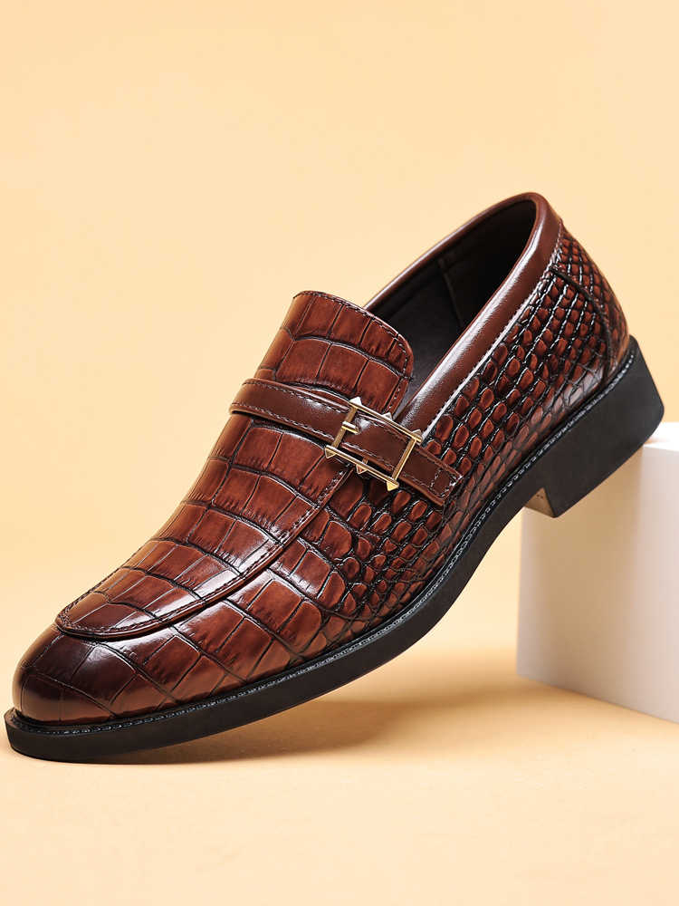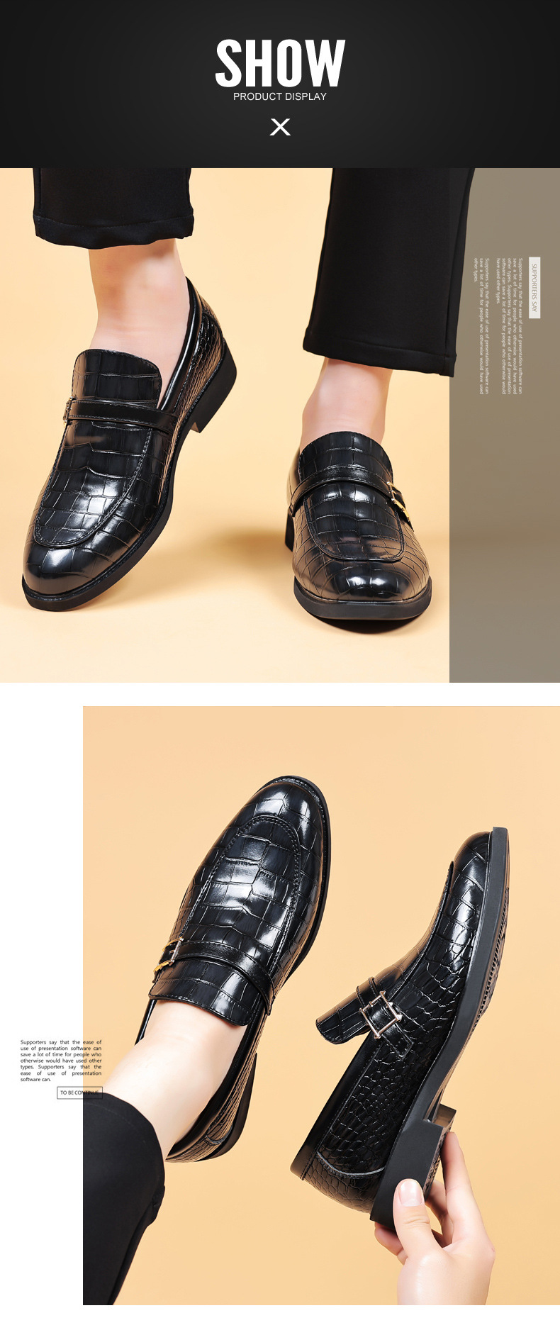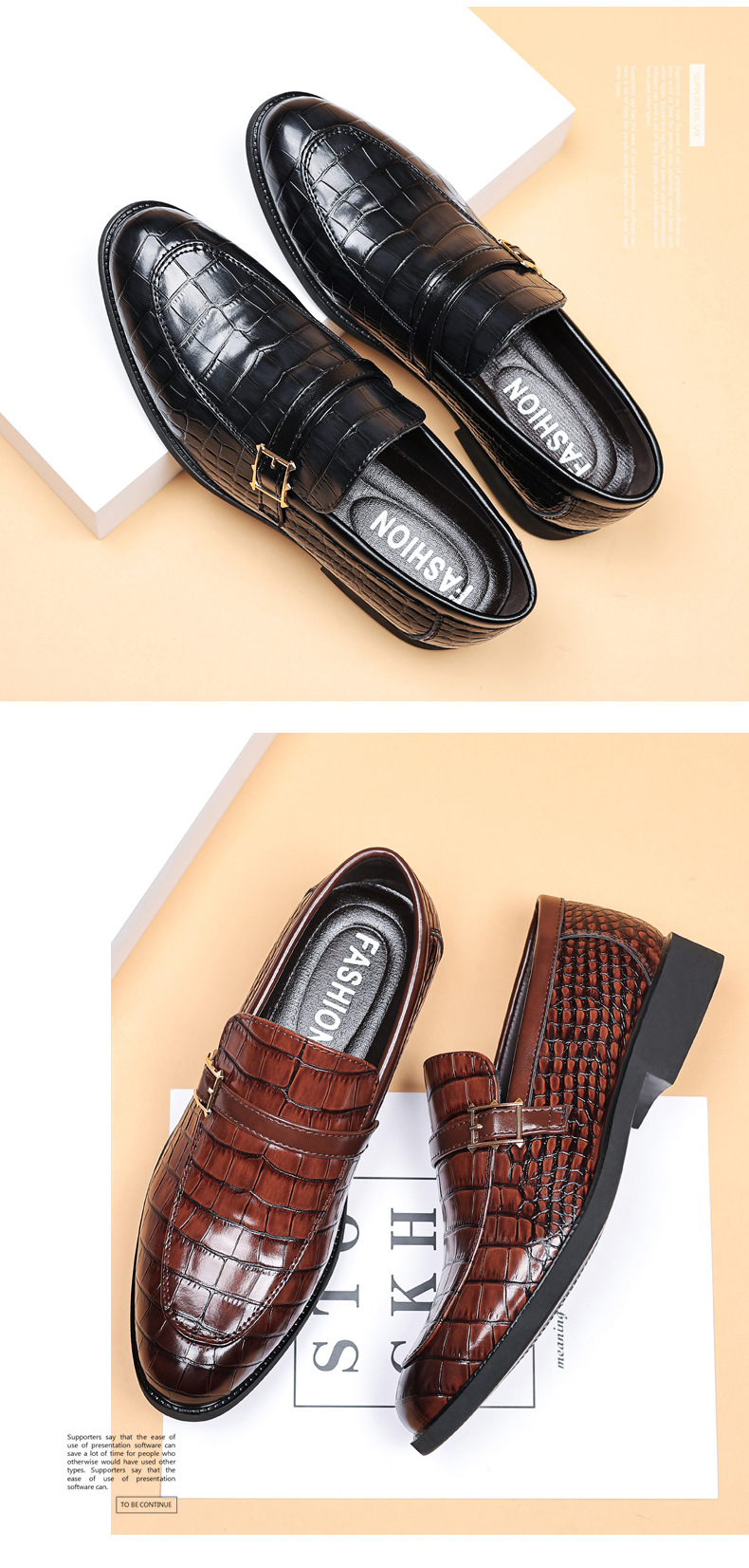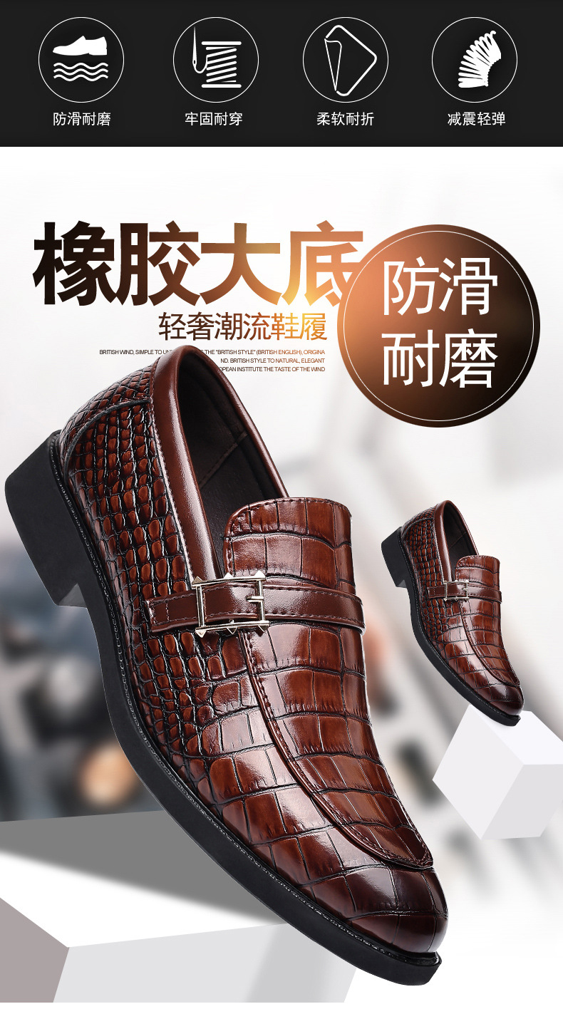가죽 신발 남성 비즈니스 원피스 캐주얼 신발 악어 패턴 남성 슬립 온 영국 한국 스타일 포인팅 발가락 캐주얼 플러스 사이즈 신발