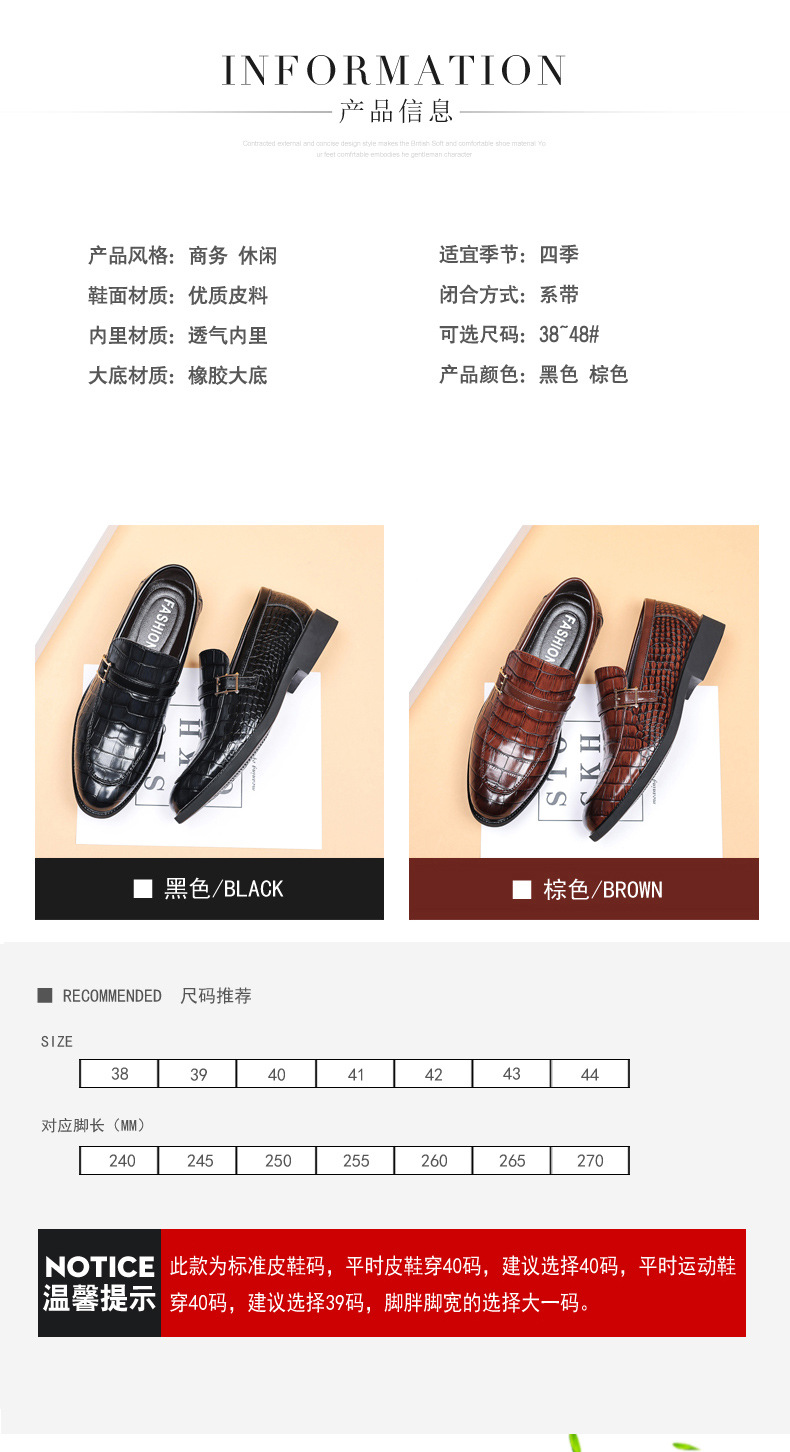 가죽 신발 남성 비즈니스 원피스 캐주얼 신발 악어 패턴 남성 슬립 온 영국 한국 스타일 포인팅 발가락 캐주얼 플러스 사이즈 신발스토어 가기
