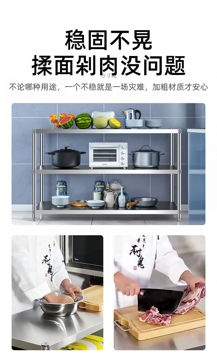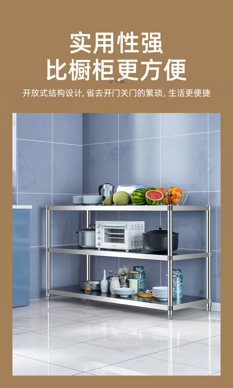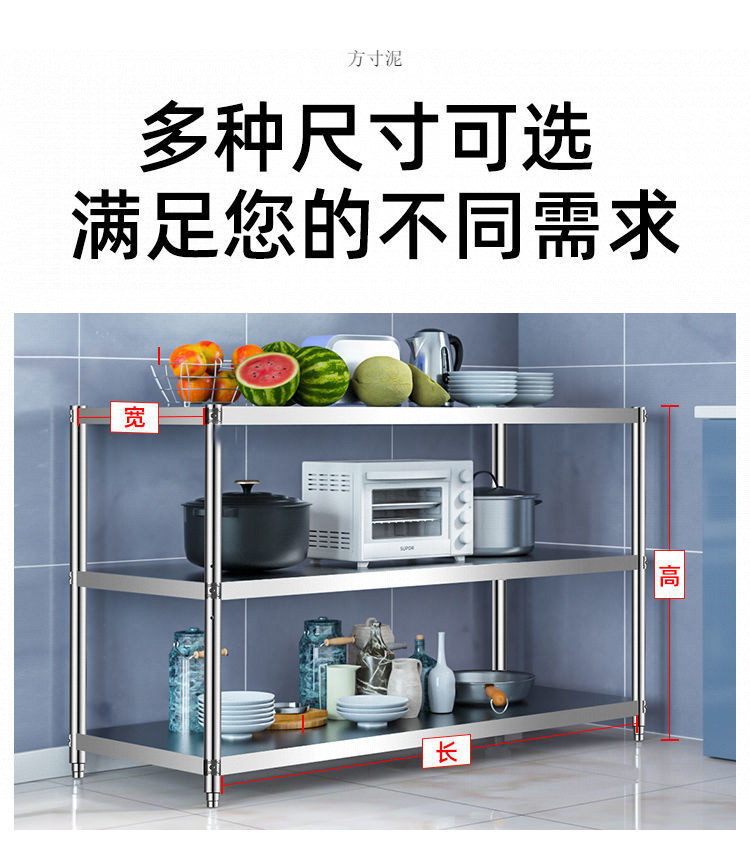 스테인레스 스틸 주방 보관 선반 바닥 다층 선반 전자 레인지 냄비 그릇 랙 가정용 보관 3 층 선반