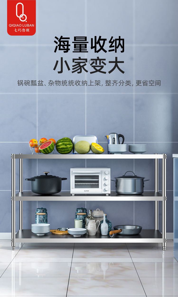 스테인레스 스틸 주방 보관 선반 바닥 다층 선반 전자 레인지 냄비 그릇 랙 가정용 보관 3 층 선반스토어 가기