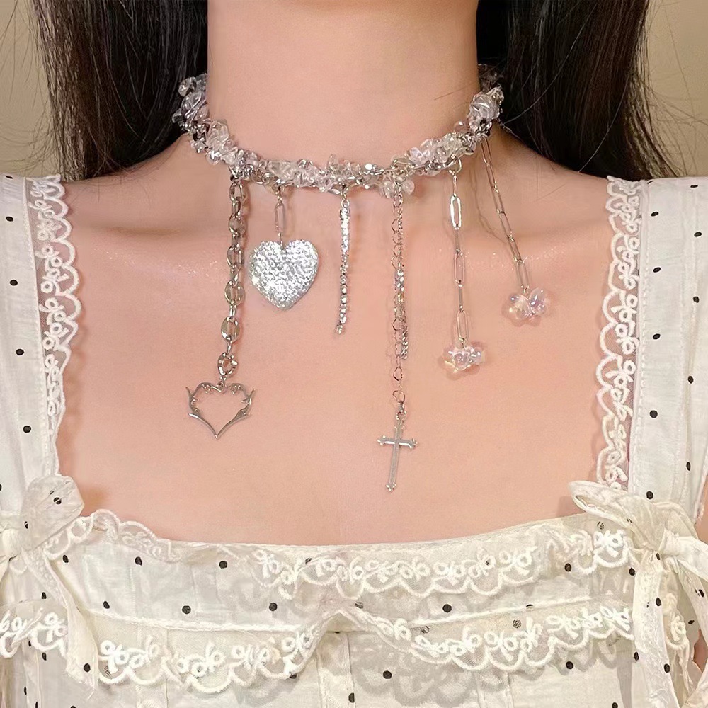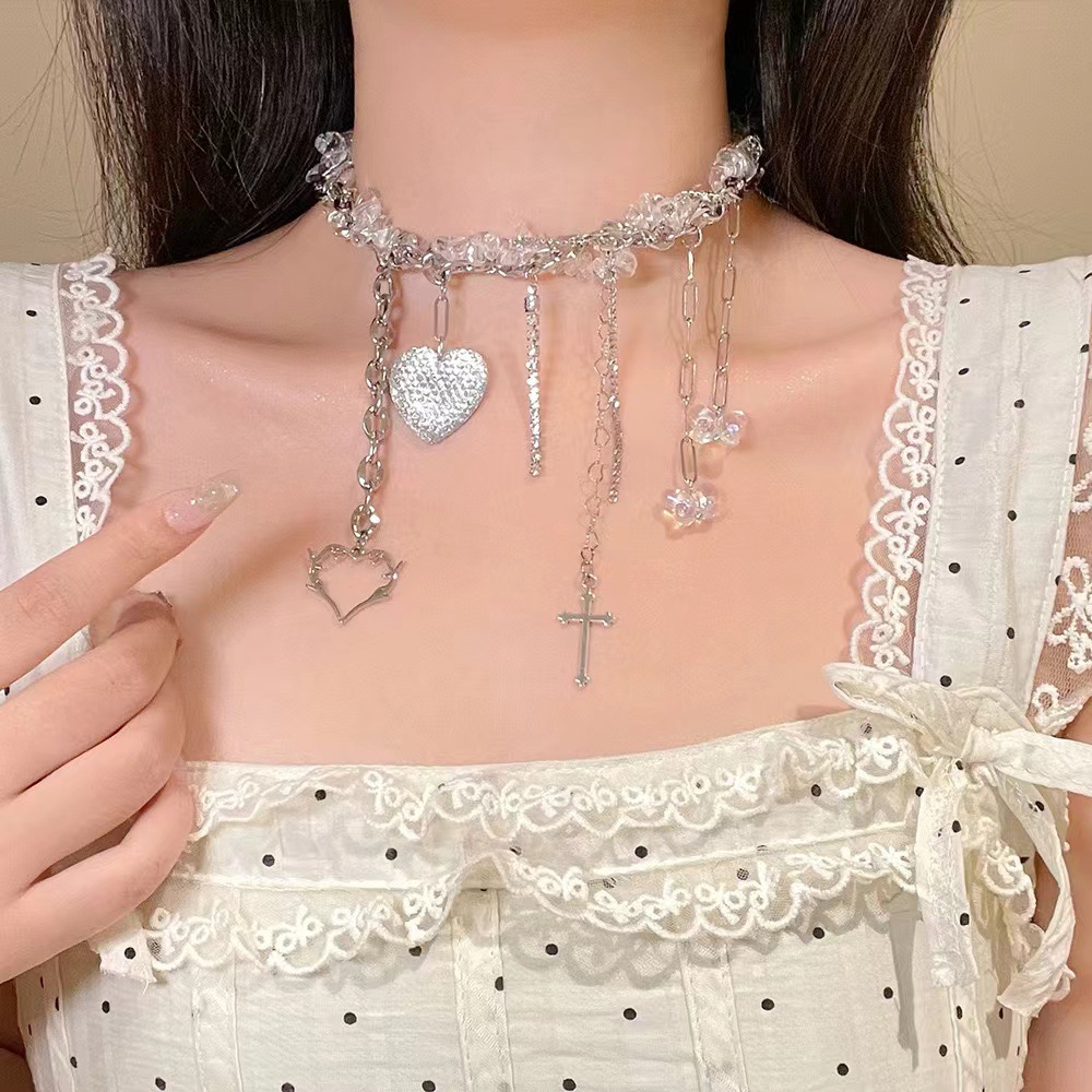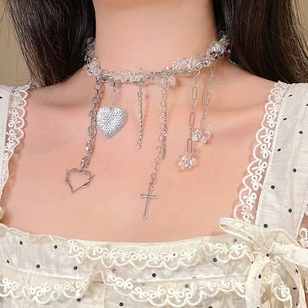 사랑 술 펜던트 포장 된 구슬 목걸이 여성용 목걸이 쇄골 체인 패션 액세서리 달콤한 멋진 스파이스 소녀 바람 목걸이 쥬얼리