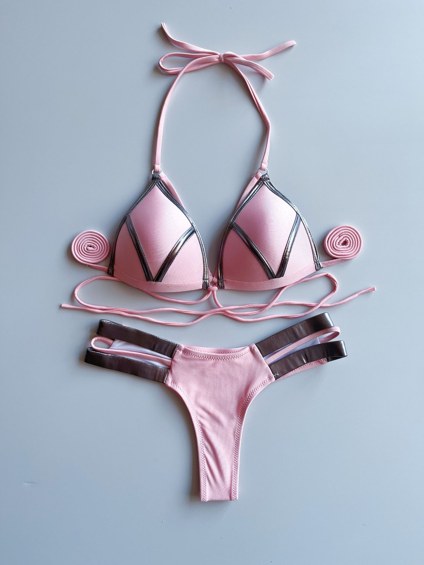 2025 AliExpress Bronzing 스티칭 비키니 여성 섹시한 수영복 수영복 대외 무역 비키니 3 색