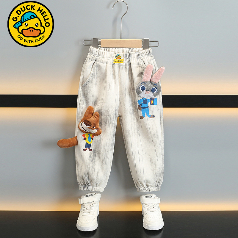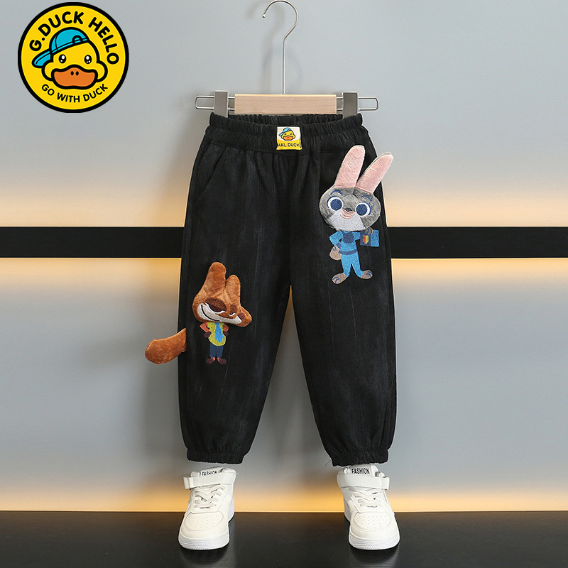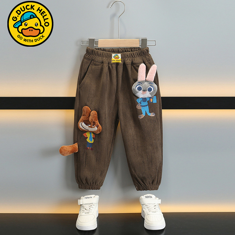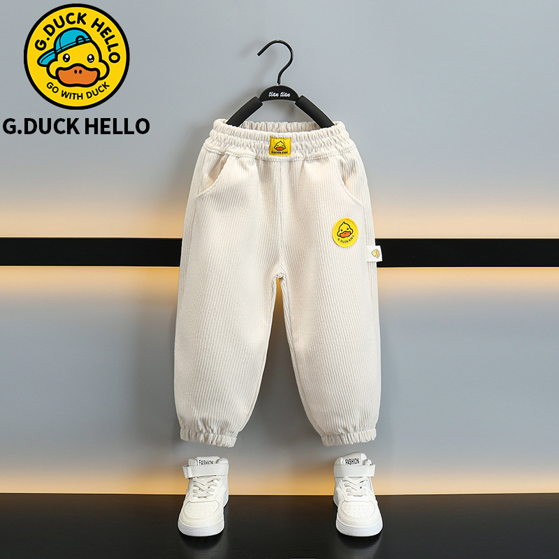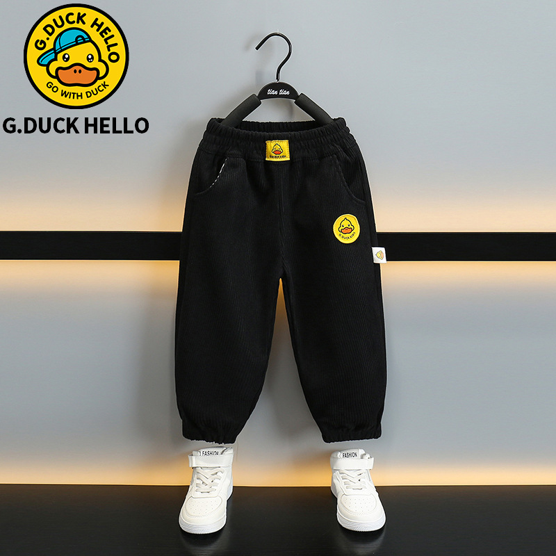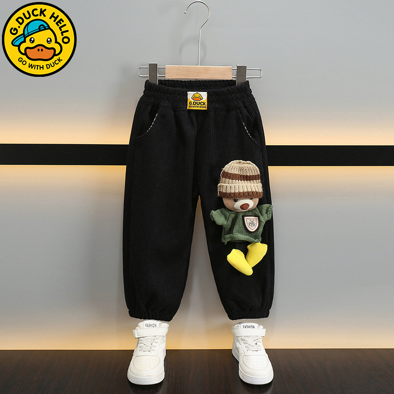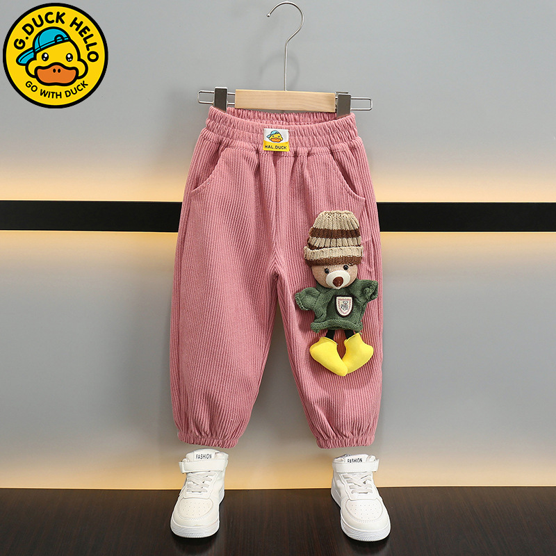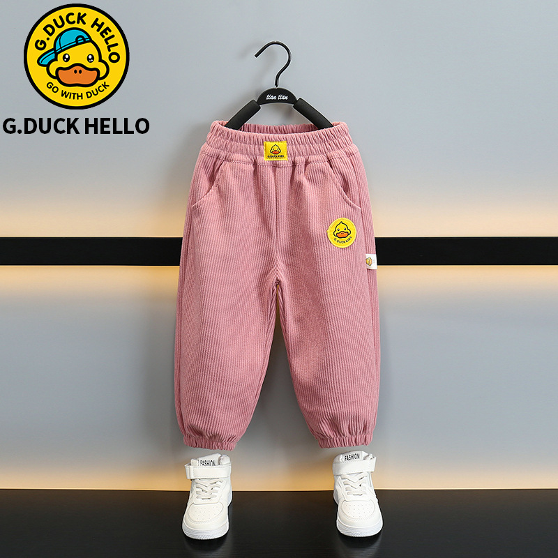 작은 노란 오리 어린이 착용 소년 바지 어린이 2024 새로운 가을과 겨울 스포츠 코듀로이 바지 어린 소녀 바지스토어 가기