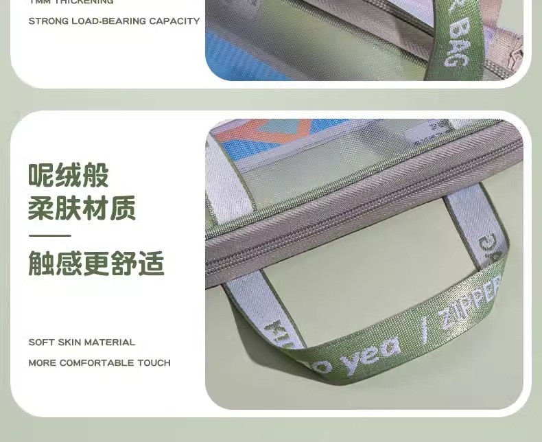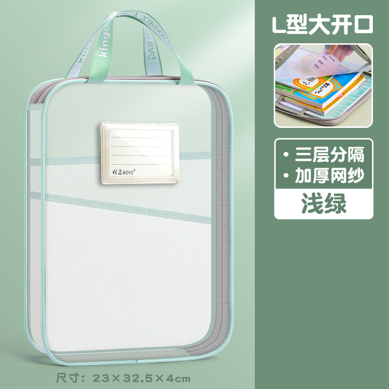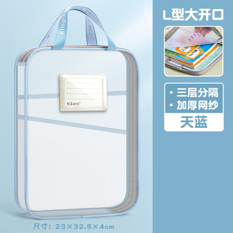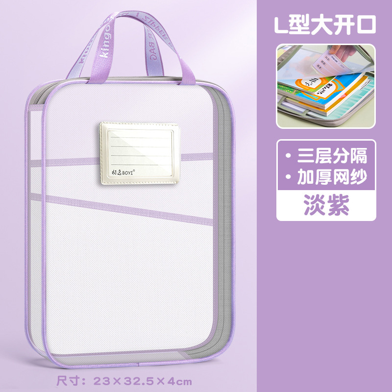 L 자형 주제 분류 가방 휴대용 투명 문서 가방 지퍼 메쉬 시험을 위해 책 가방을 들고 큰 오프닝 학생