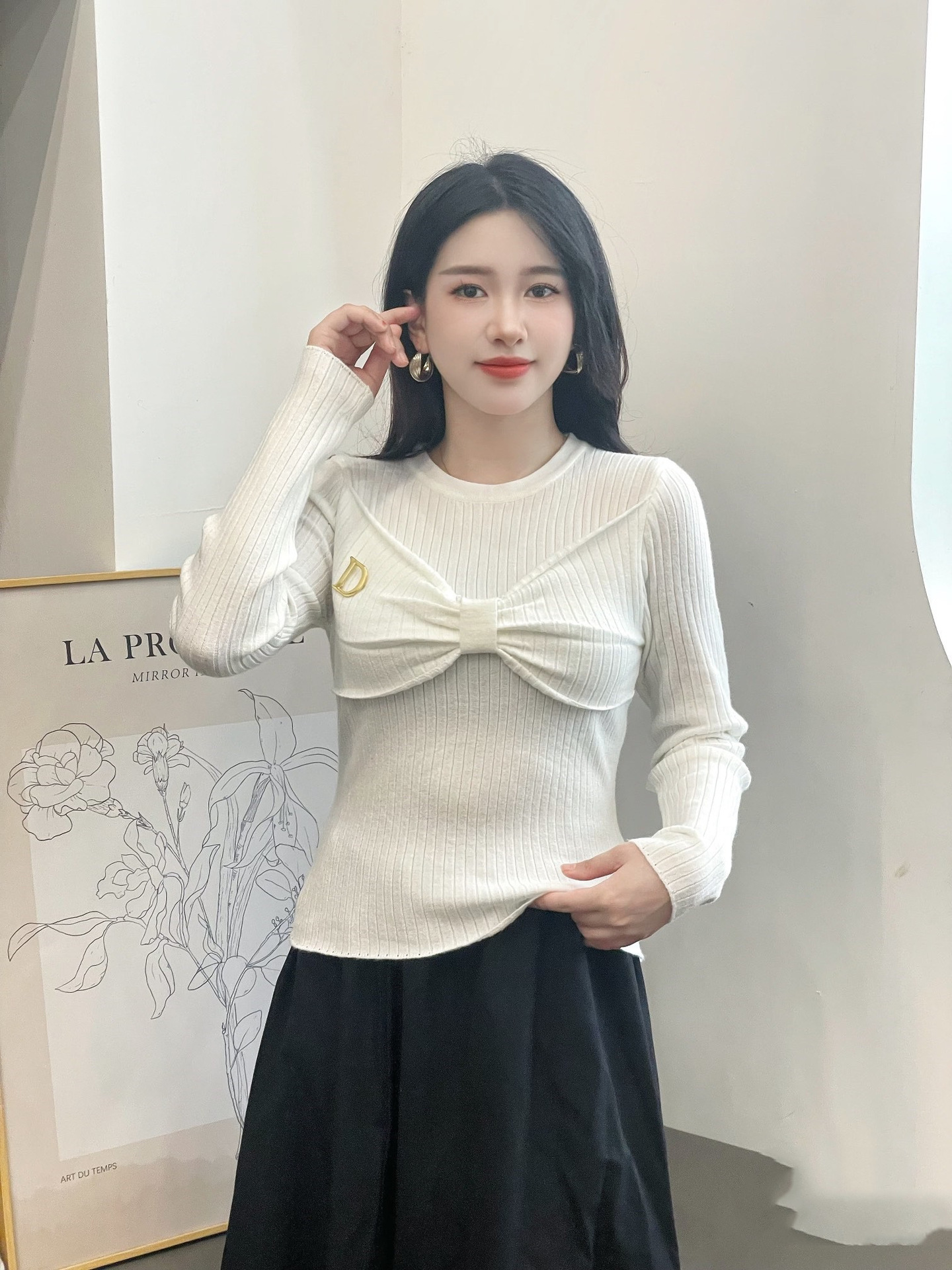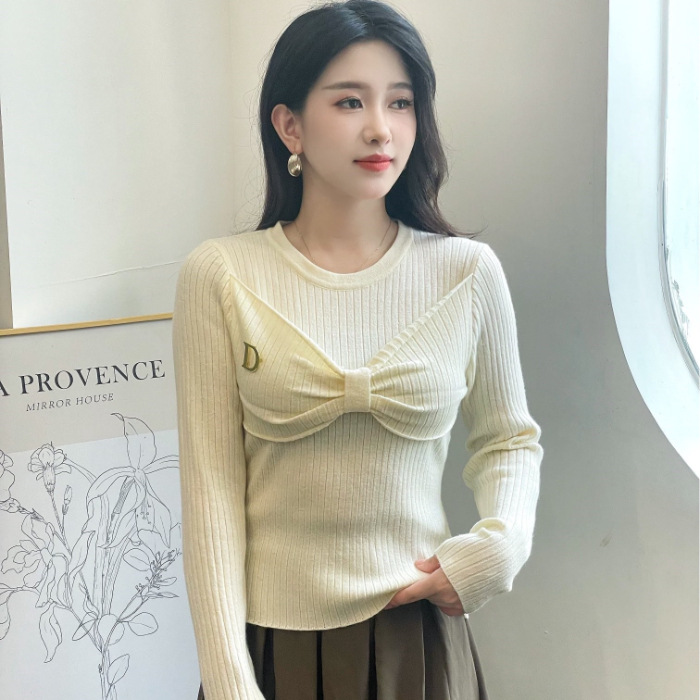하이 퀄리티 소녀 2024 가을과 겨울 한국 세련된 패션 잉크 바느질 가짜 투피스 구덩이스토어 가기