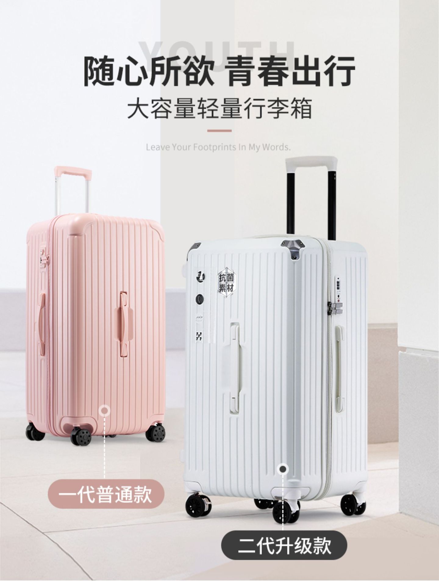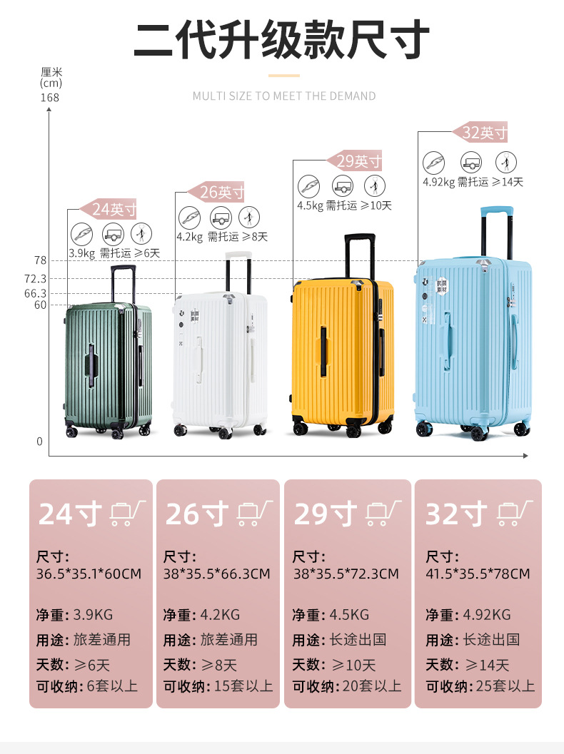수하물 케이스 대용량 남성과 여성의 대형 여행 넥타이 로드 음소거 높은 색상 가치 유니버설 휠 암호 상자 브레이크