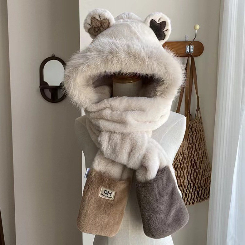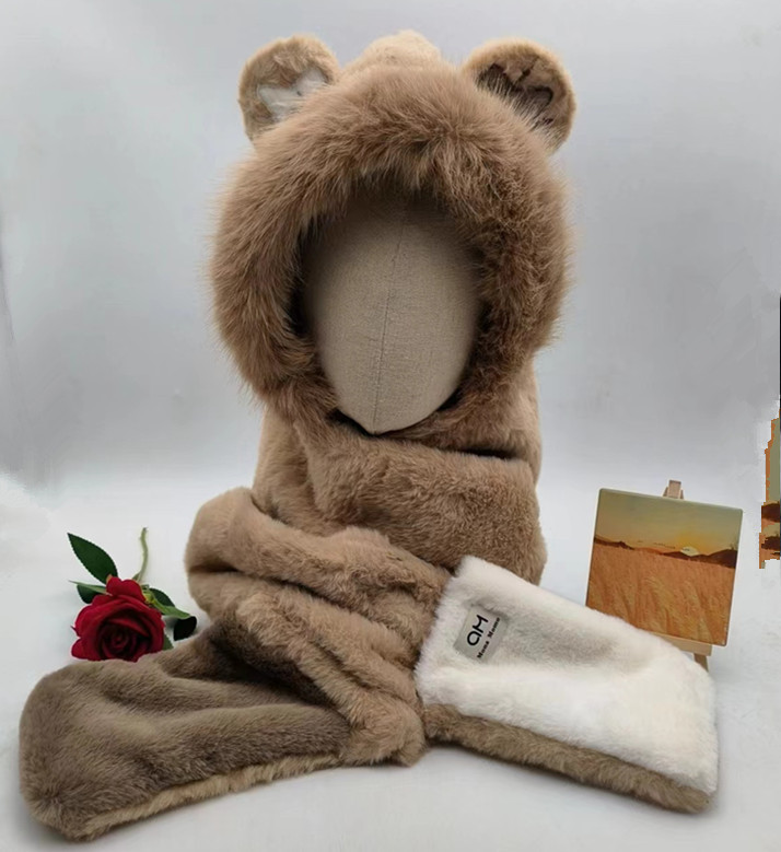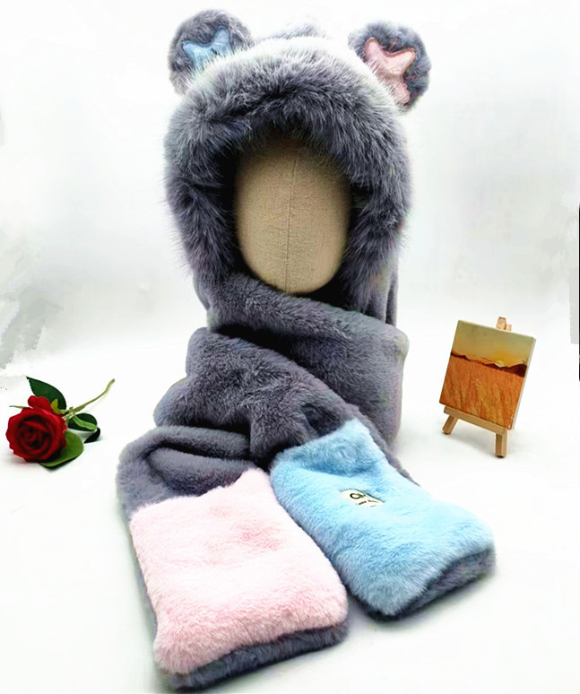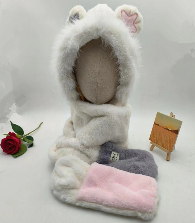 모자 여자의 가을과 겨울 모자 스카프 장갑 3 피스 세트 모조 토끼 모피 모자 플러시 따뜻한 귀 보호 사이클링을위한 모든 경기