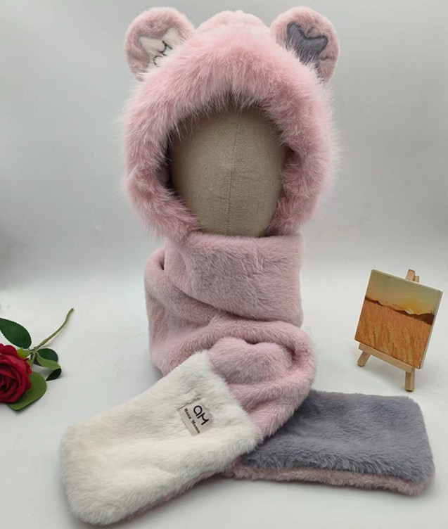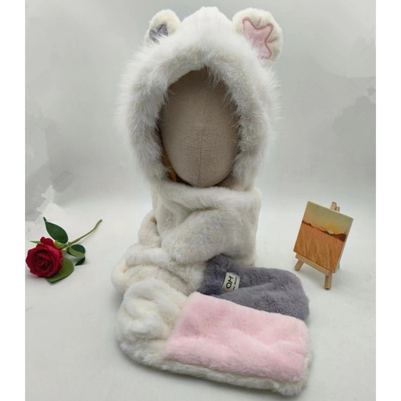모자 여자의 가을과 겨울 모자 스카프 장갑 3 피스 세트 모조 토끼 모피 모자 플러시 따뜻한 귀 보호 사이클링을위한 모든 경기스토어 가기