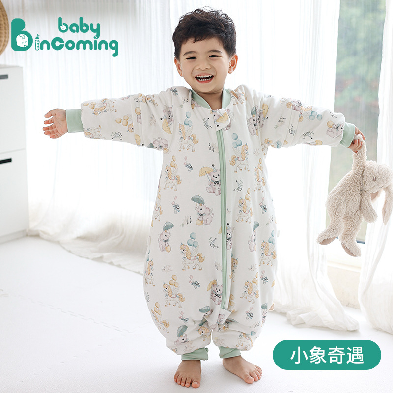 아기 슬리핑 백 가을과 겨울 클래스 A 어린이 면화 두꺼운 탈착식 슬리브 스플릿 레그 슬리핑 백 안티 킥 및 안티 스타틀 아티팩트스토어 가기