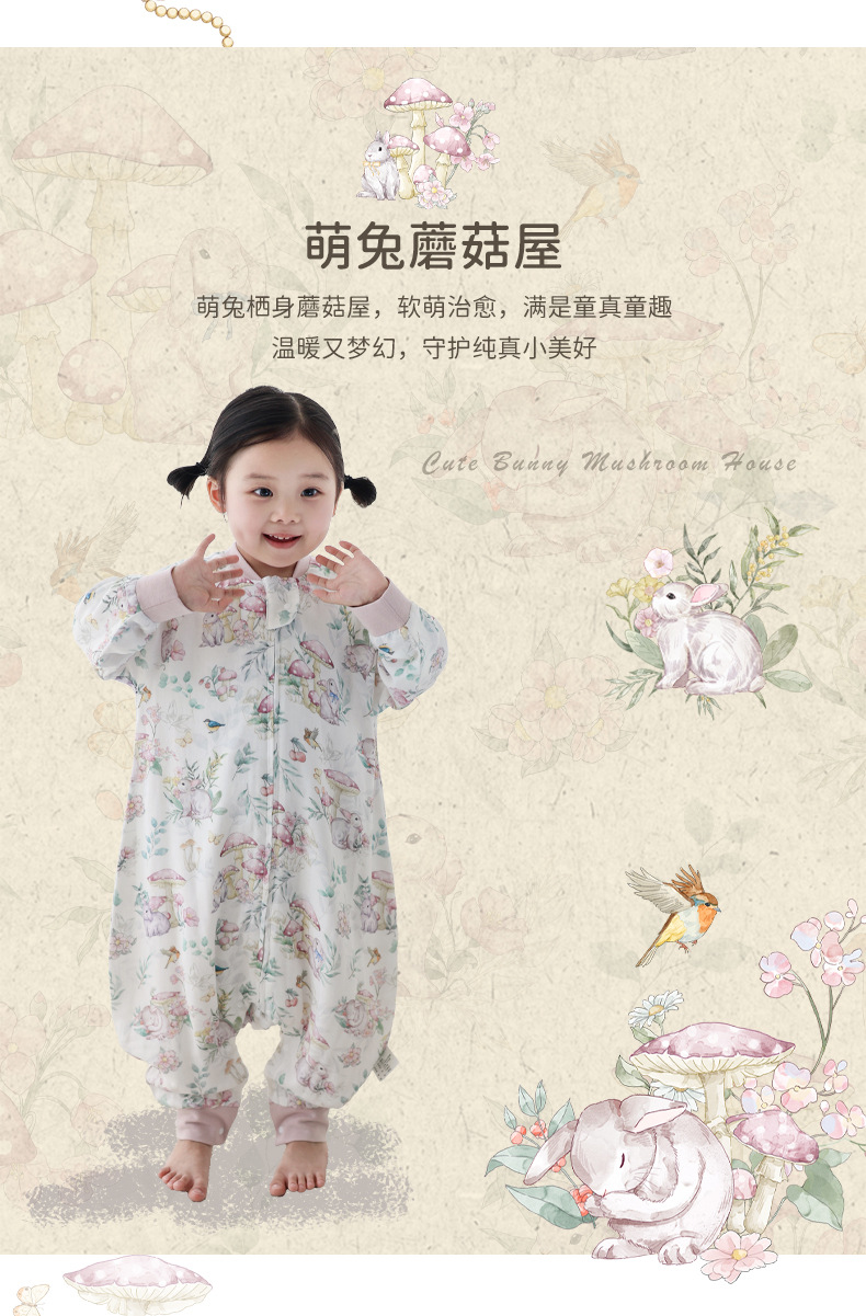 • 귀여운 토끼 버섯집 - 업그레이드된 6겹 천죽 긴팔(실내온도 20~24도 권장)℃)