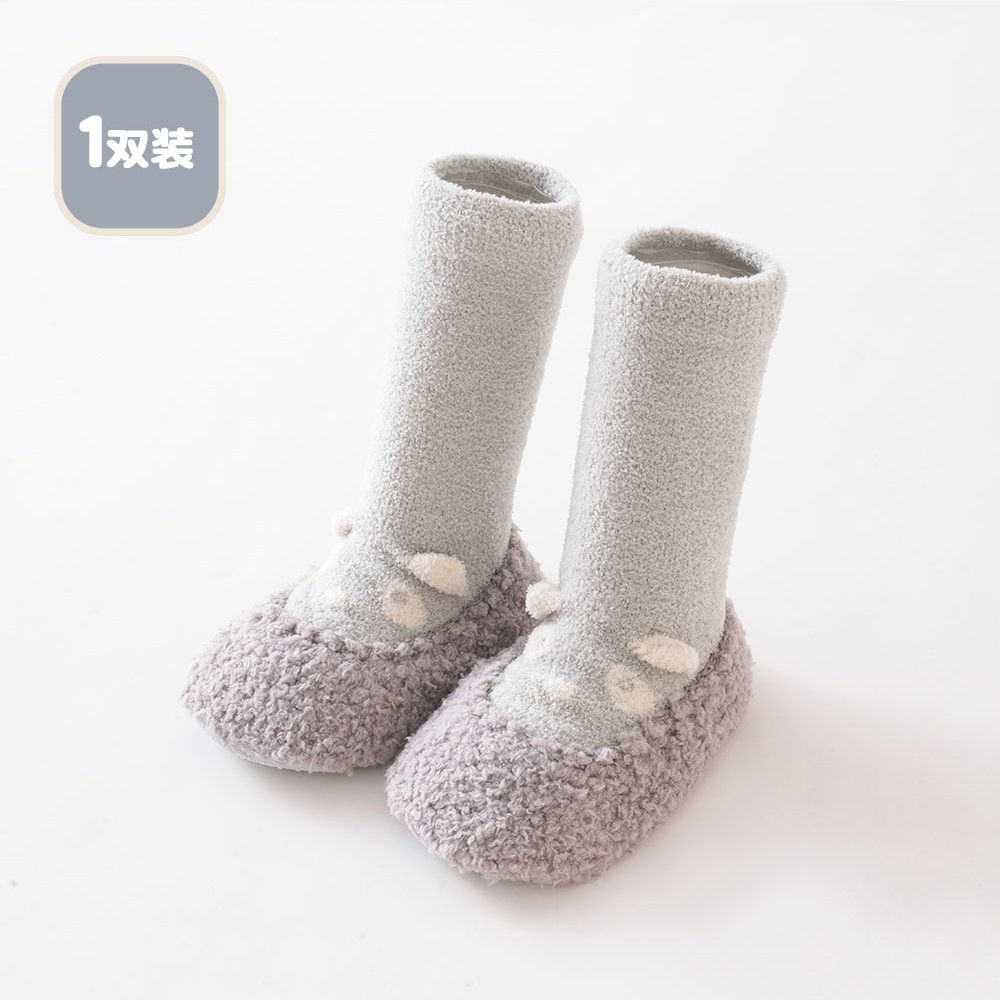 가을 겨울 아기 걸음마 신발 두꺼운 만화 캐릭터 아기 젤 바닥 신발 양말 세트 부드러운 밑창 어린이 미끄럼 방지 신발 양말