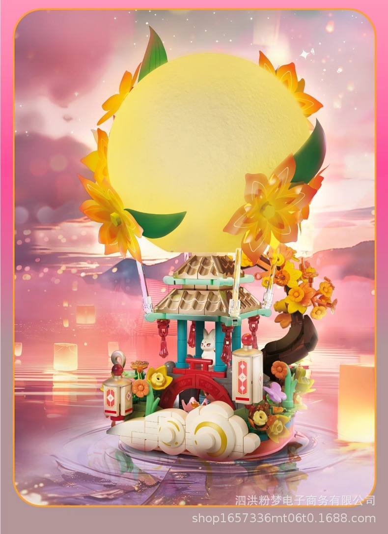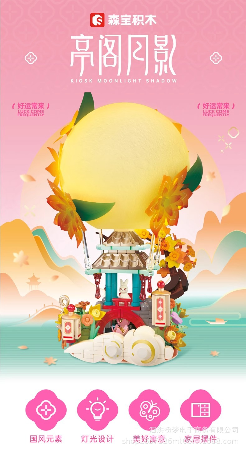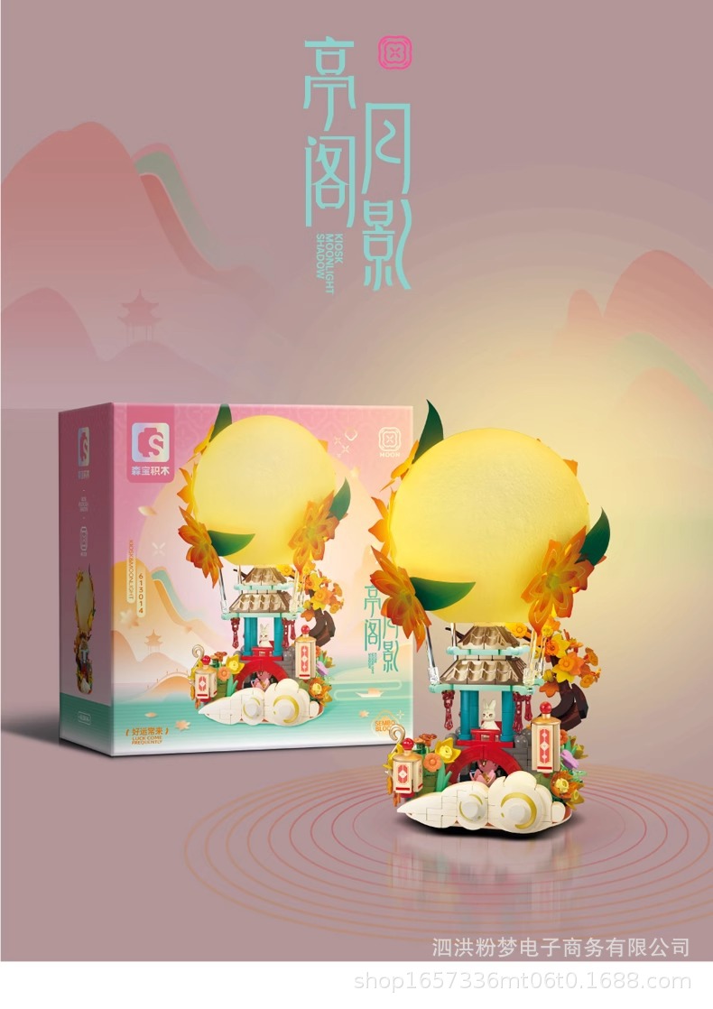 Senbao 613014 파빌리온 문 그림자 중추절 조명 장식품 조립 건물 블록 휴일 선물 상자 어린이 장난감 선물스토어 가기