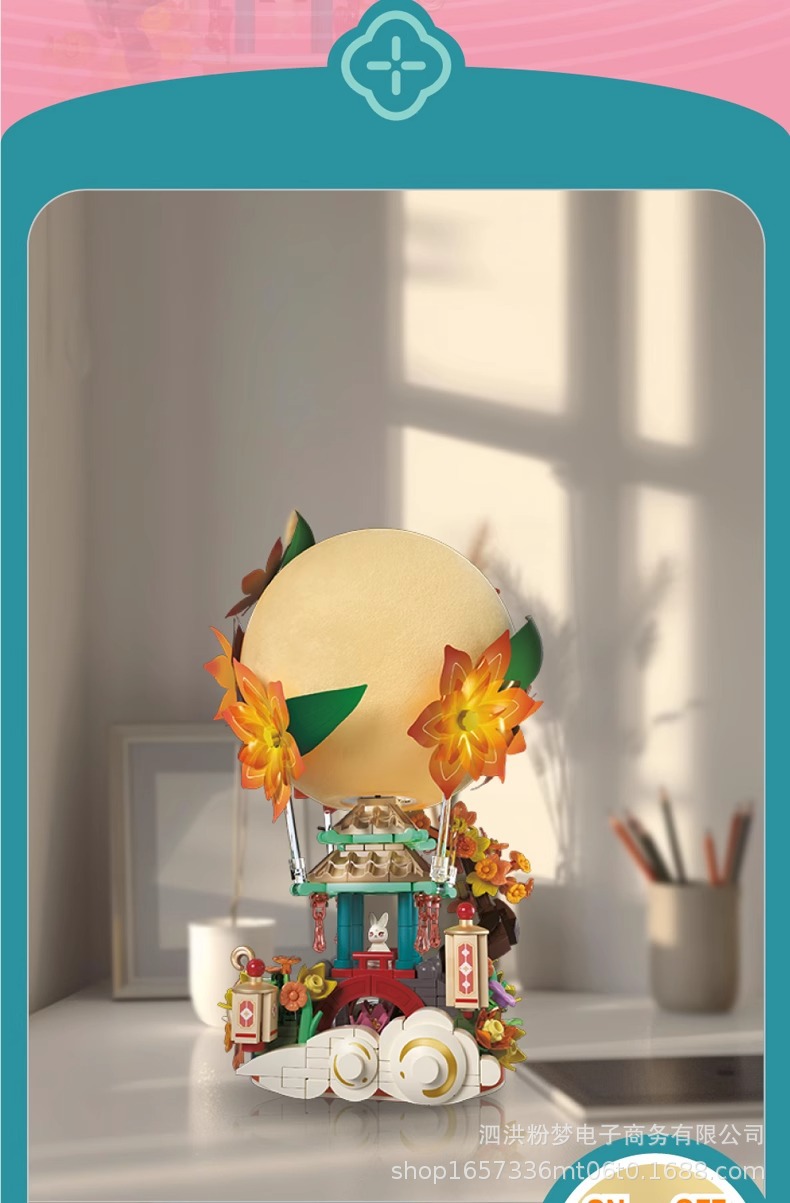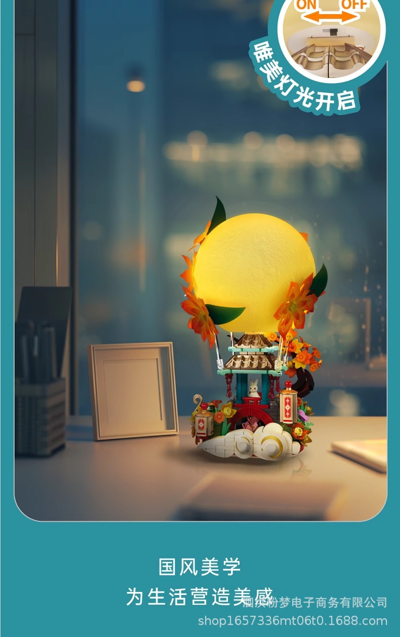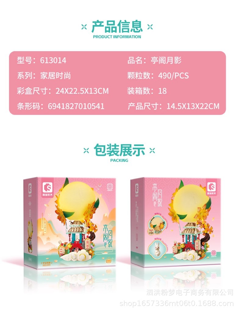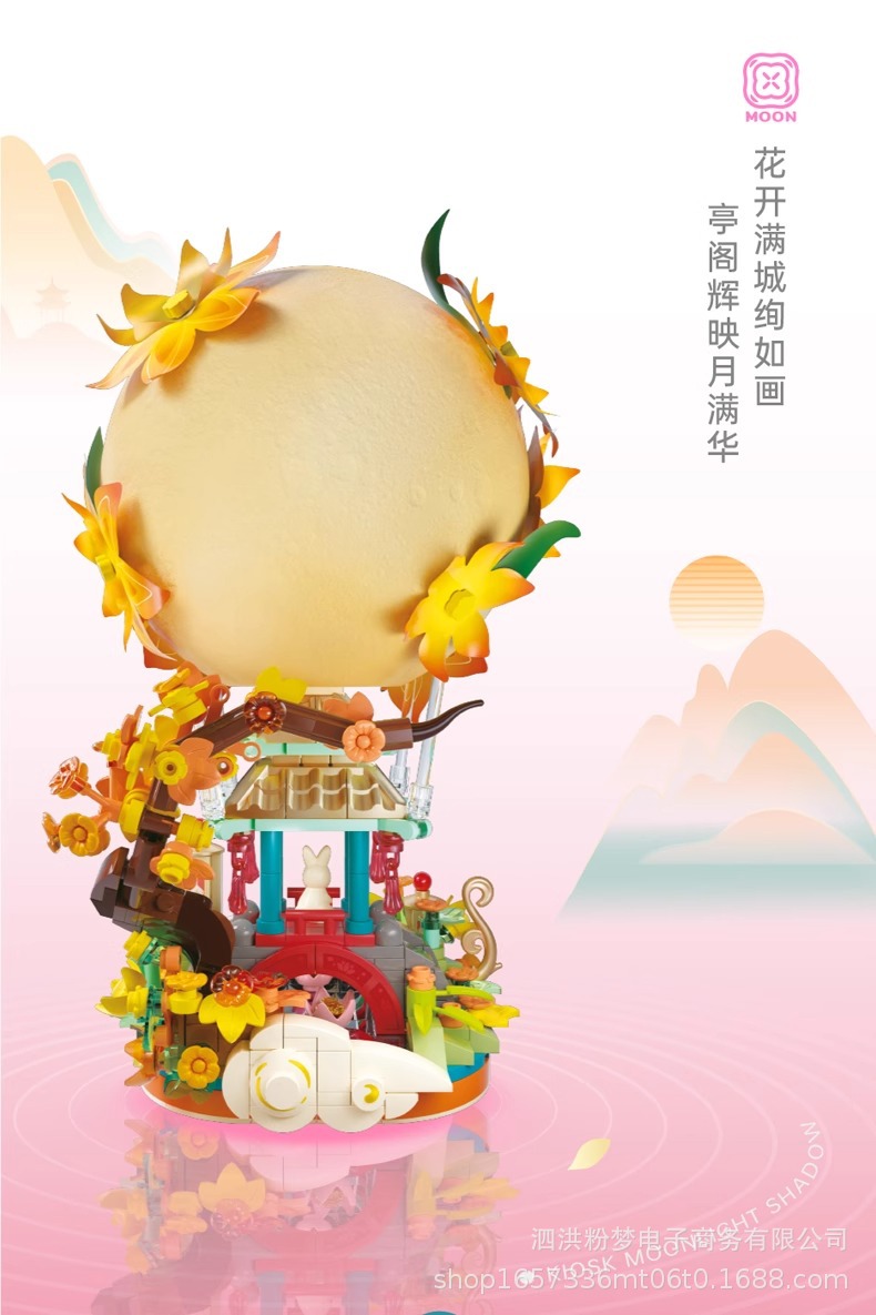 Senbao 613014 파빌리온 문 그림자 중추절 조명 장식품 조립 건물 블록 휴일 선물 상자 어린이 장난감 선물스토어 가기