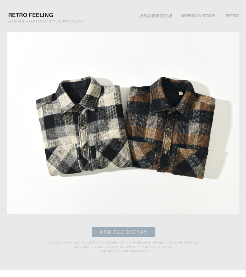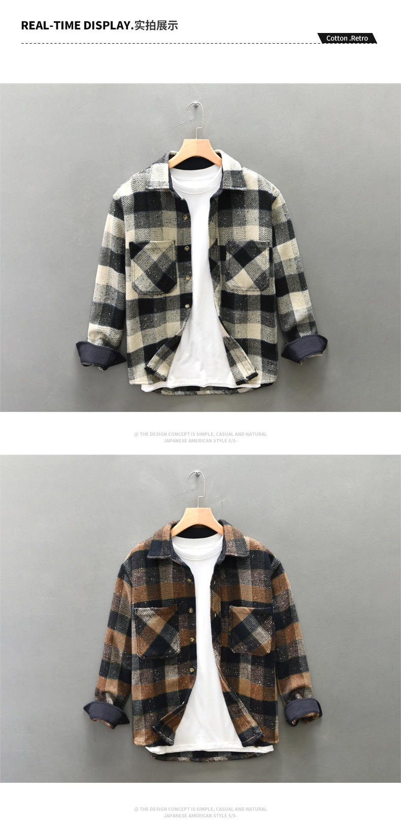Z261 남자 복고풍 격자 무늬 캐주얼 긴 소매 셔츠스토어 가기