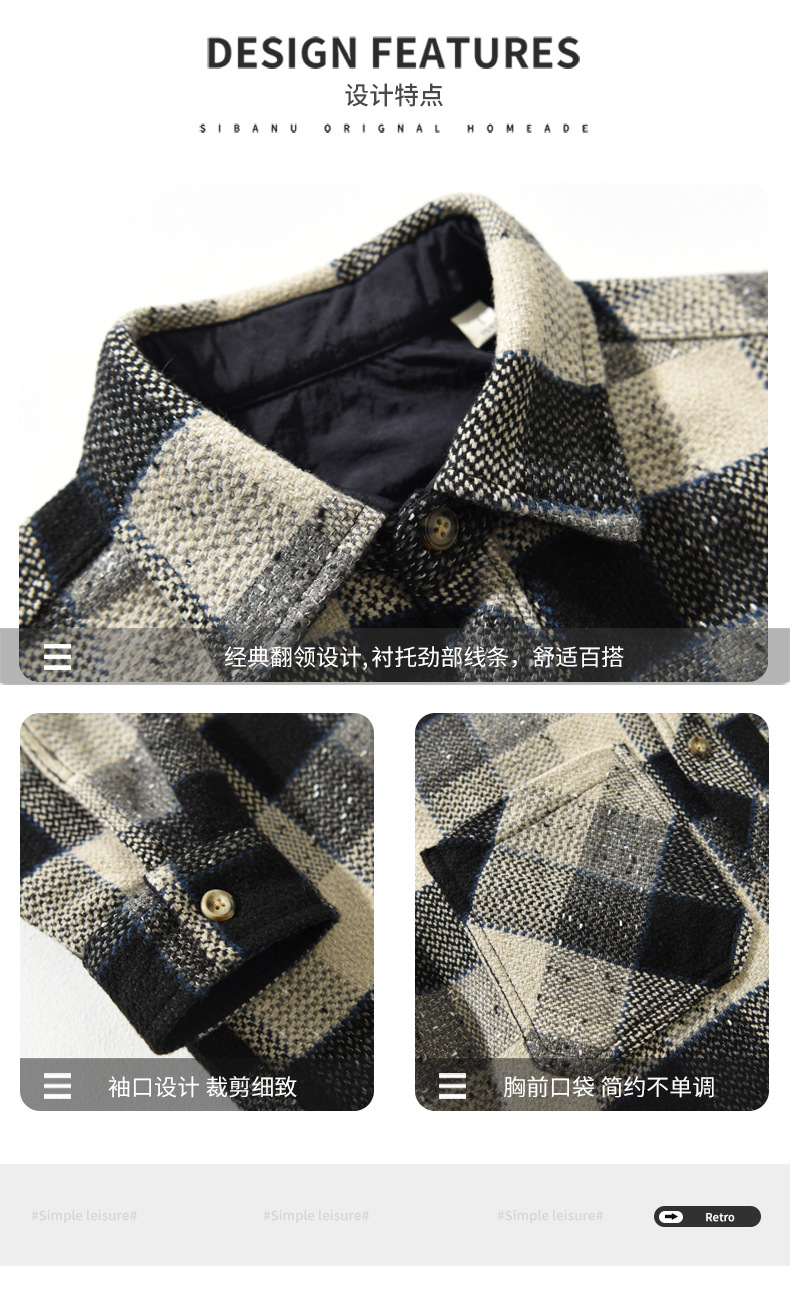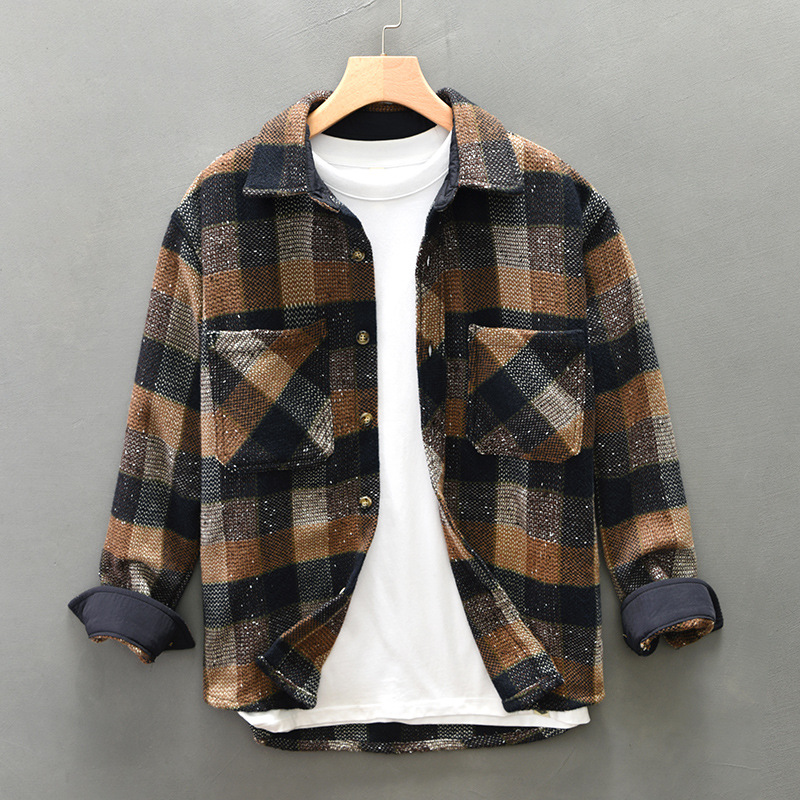 Z261 남자 복고풍 격자 무늬 캐주얼 긴 소매 셔츠