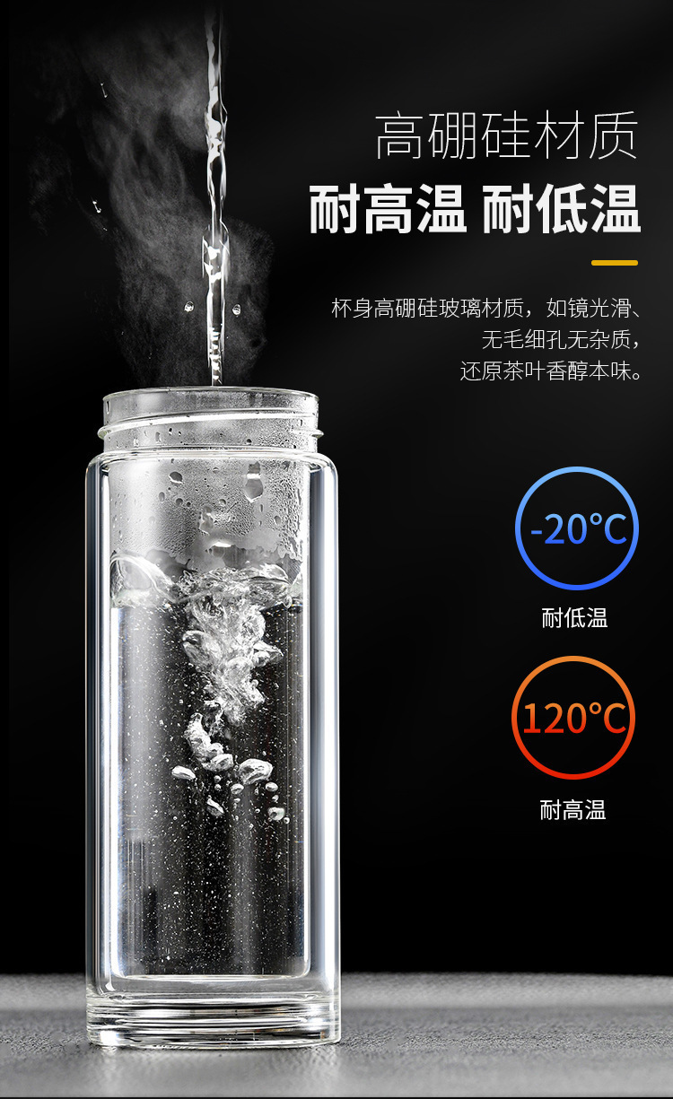 하나의 열쇠 열린 뚜껑 차 물 분리 컵 자동차 물 컵 높은 borosilicate 더블 레이어 유리 사무실 남자 차 컵