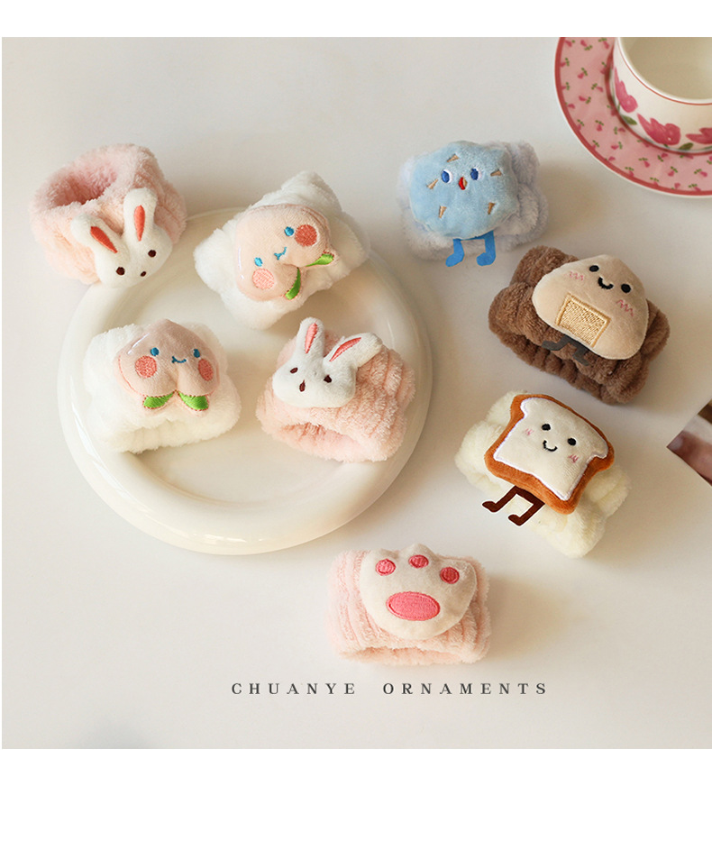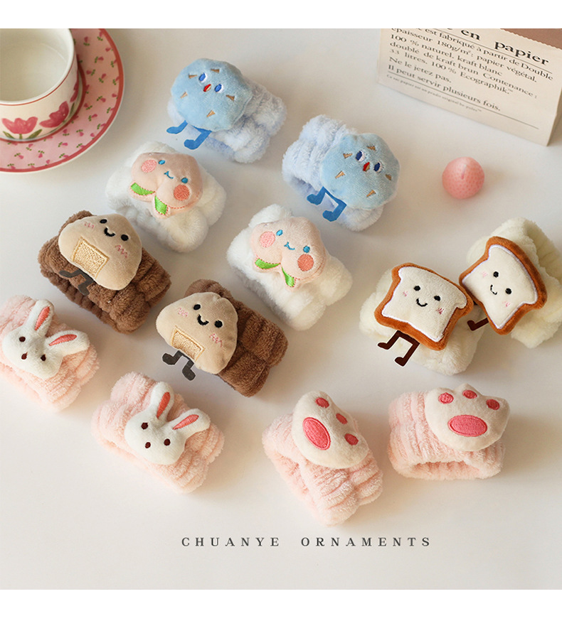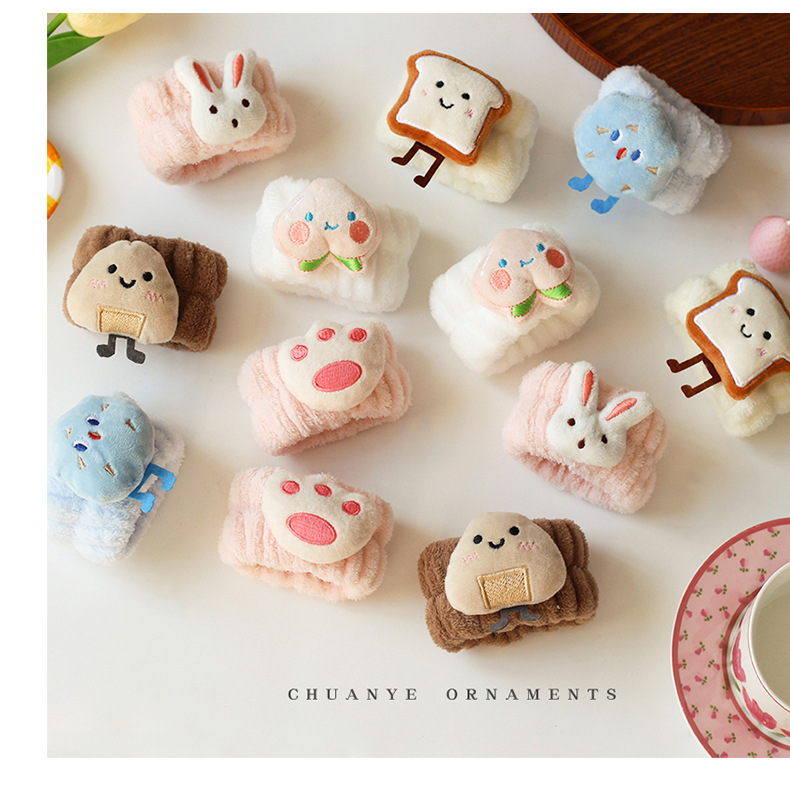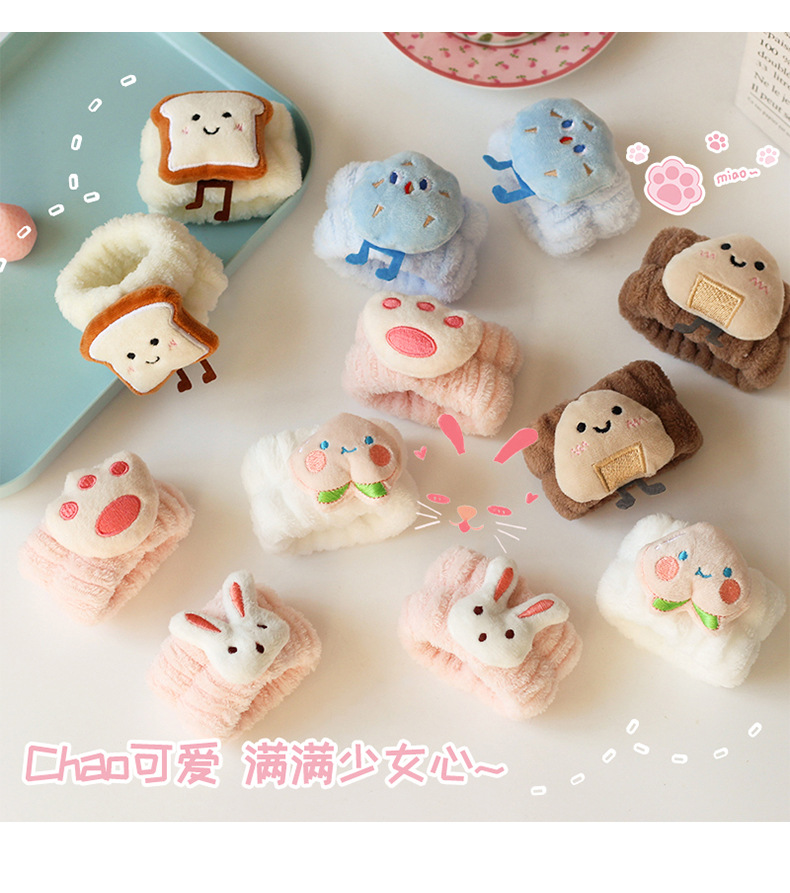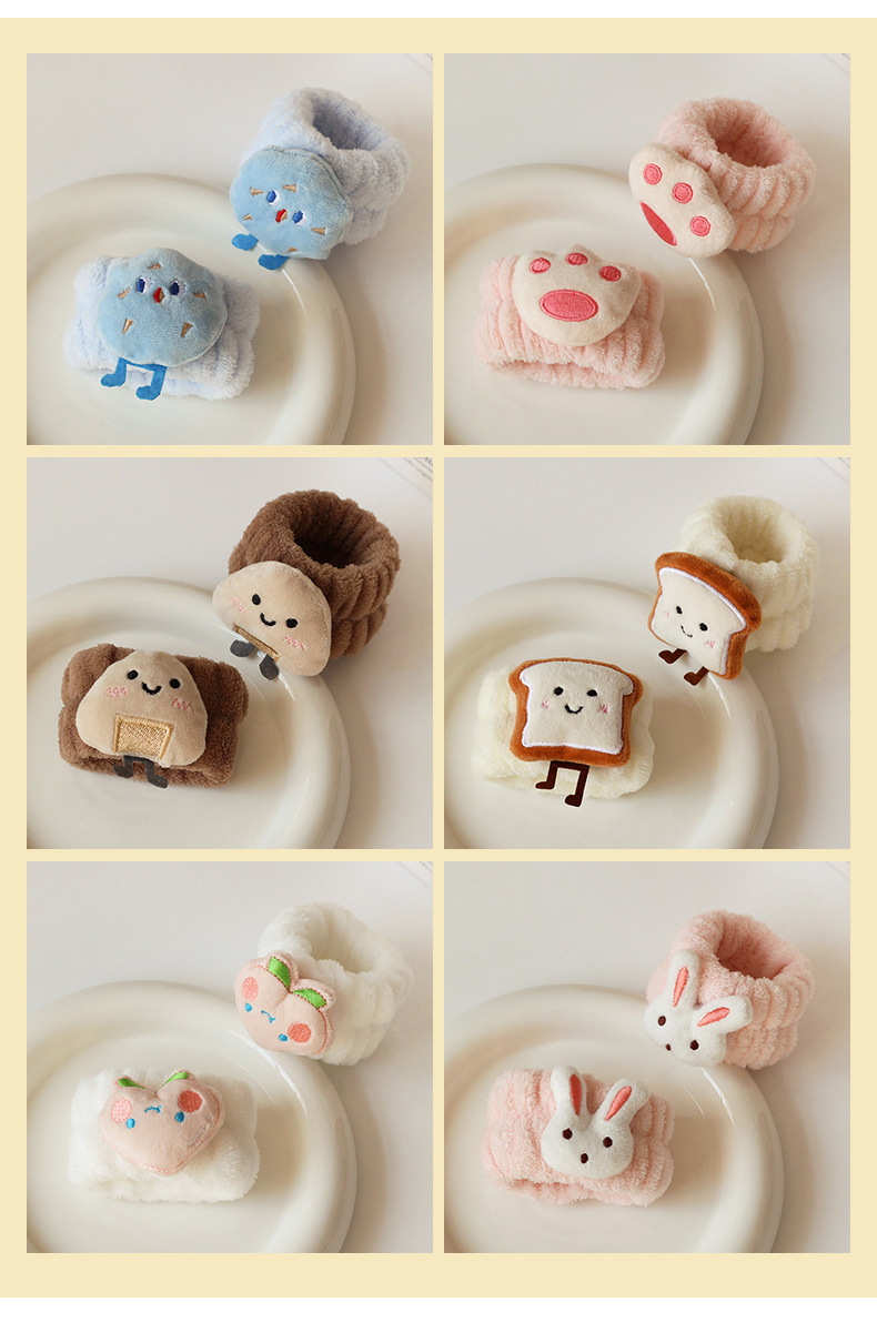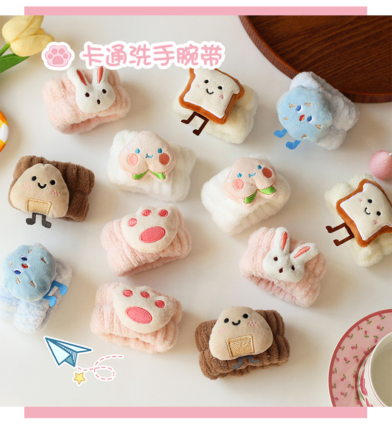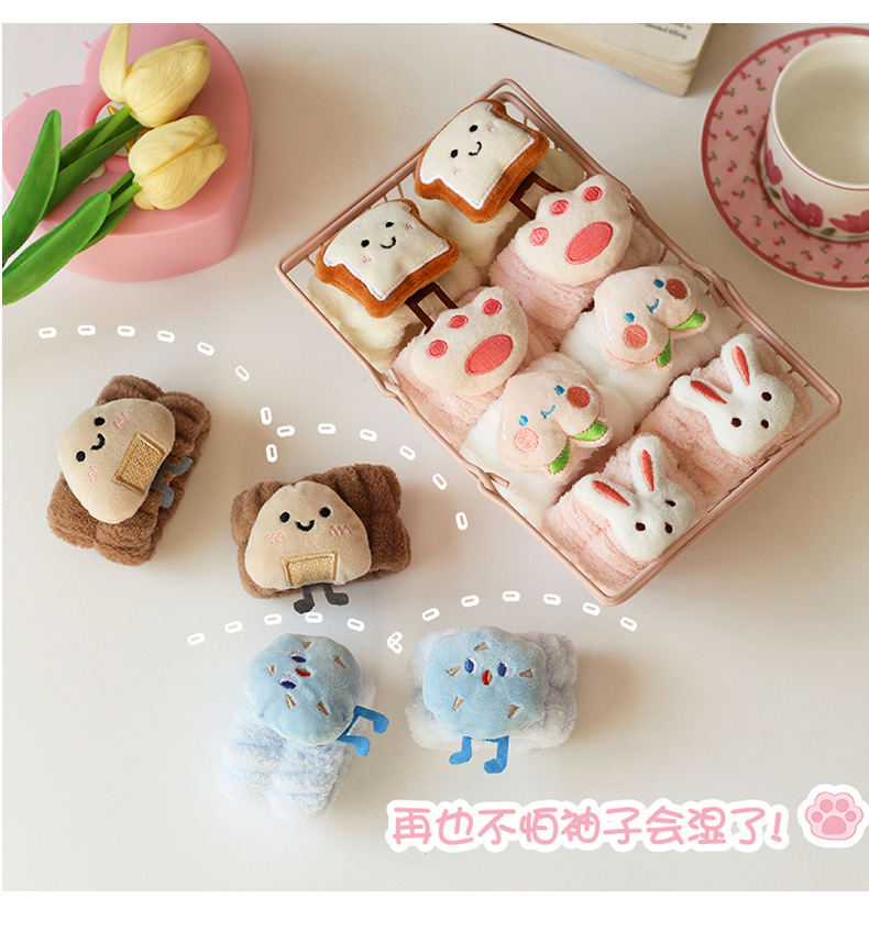 세척 만화 팔찌 손목 브래지어 방수 케이스 손목 밴드 흡수성 땀 세척 얼굴 수분 방지 토스트 귀여운 커프 아티팩트