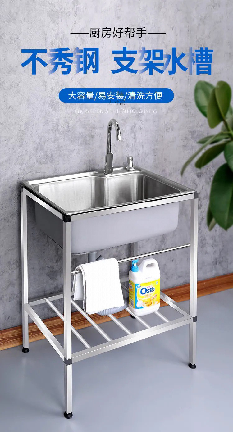 주방 304 스테인레스 스틸 물 두꺼운 대형 싱글 및 더블 야채 세척 분지 브래킷