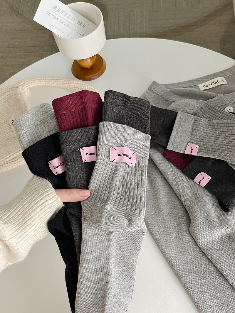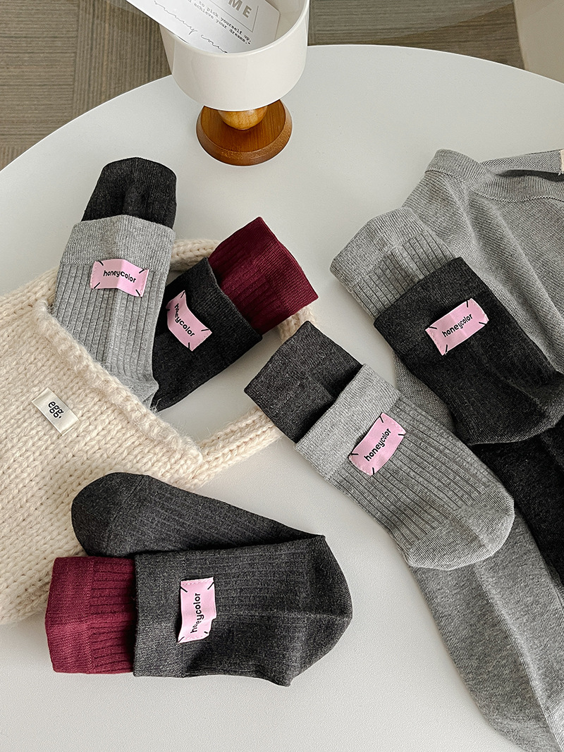 양말 여성용 더블 레이어 스티칭 대비 컬러 힐 패브릭 라벨 중간 길이 양말 Ins 유행 스포츠 스타일 스택 양말스토어 가기