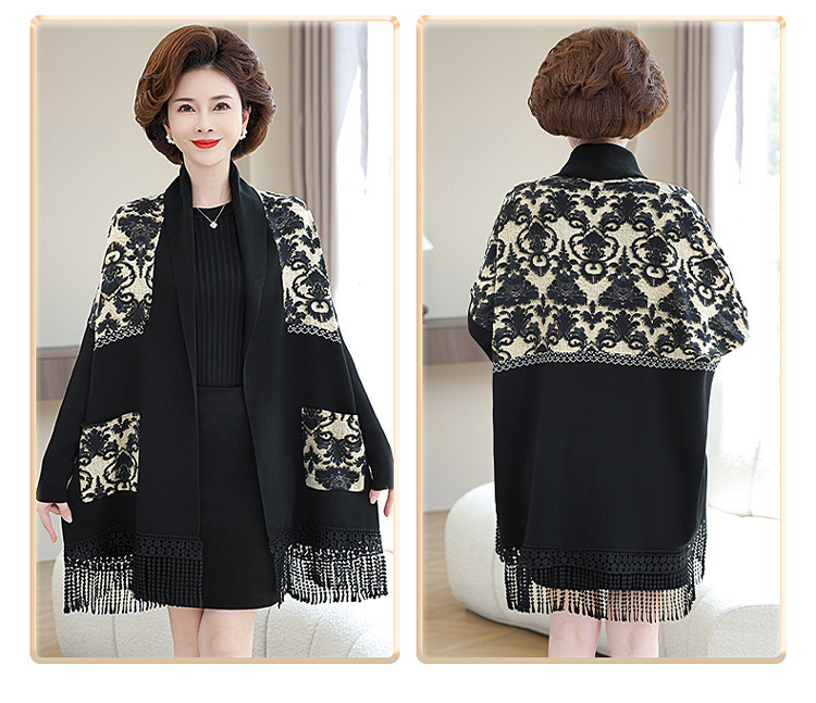 외국 스타일 어머니의 목도리 여성의 가을과 겨울 케이프 스타일 코트 중간 길이의 느슨한 니트 카디건 두꺼운 스웨터스토어 가기